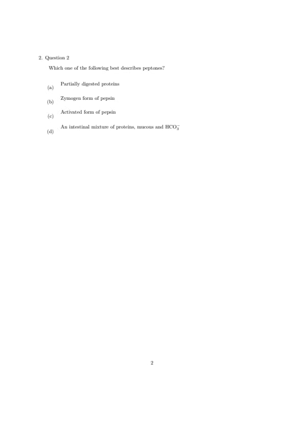 - Option (B) refers to pepsinogen, which is the inactive form of pepsin, not peptones.