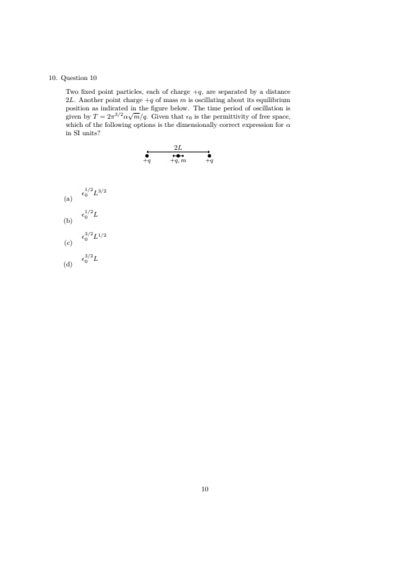 Step 7: The dimension of \(\epsilon_0^{1/2} L^{3/2}\) is: \[ M^{-1/2} L^{-3/2} I^{1} T^{2} \times L^{3/2} = M^{-1/2} I^{1} T^{2}, \]