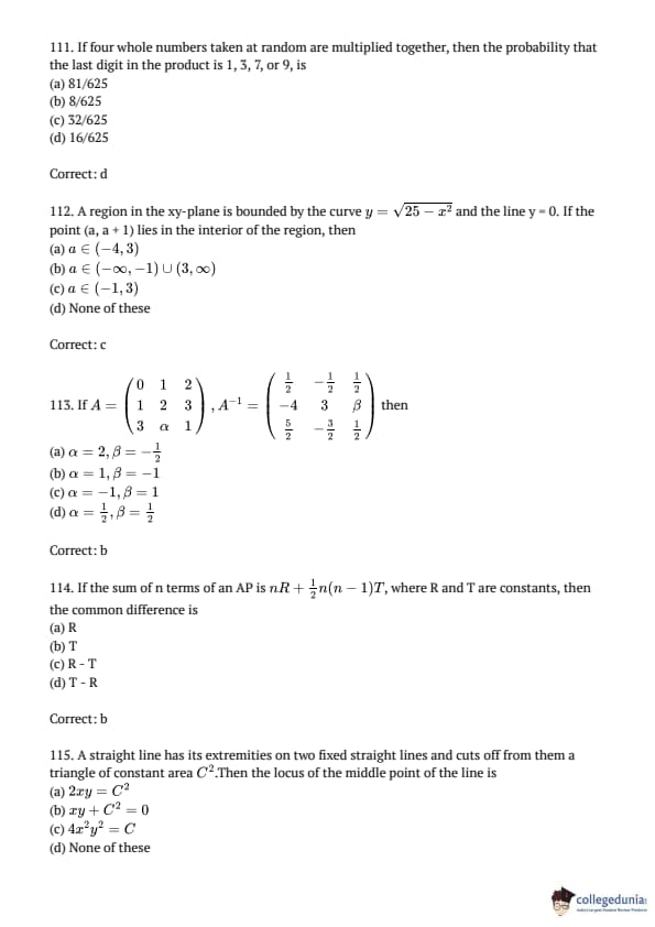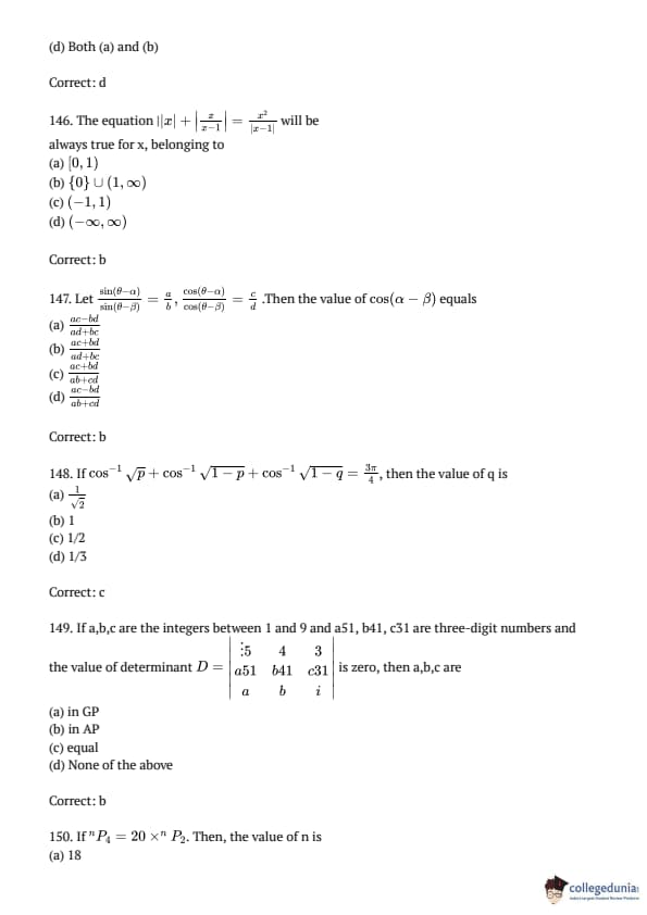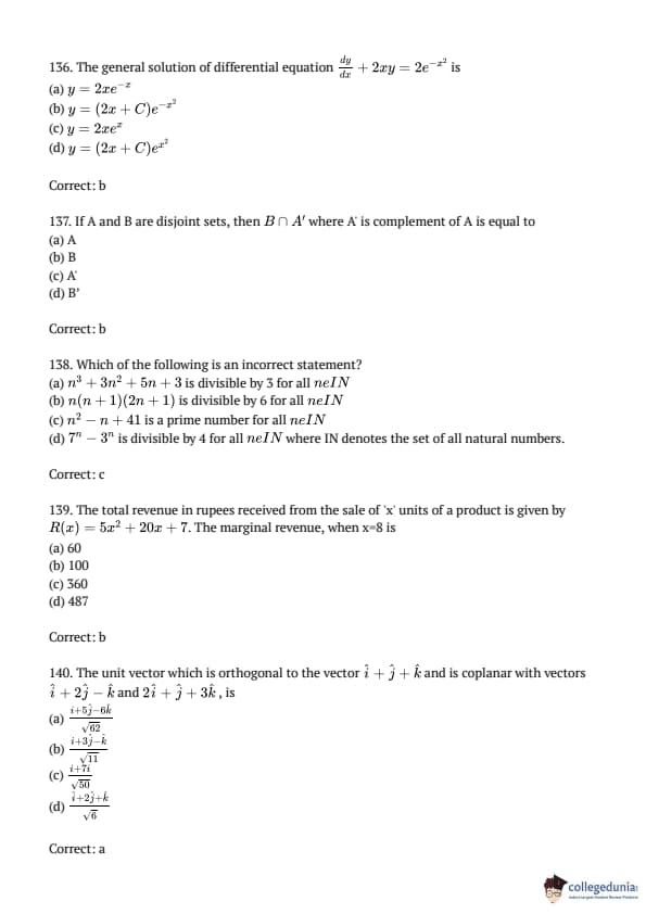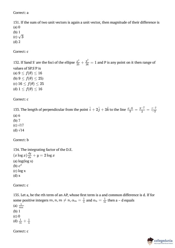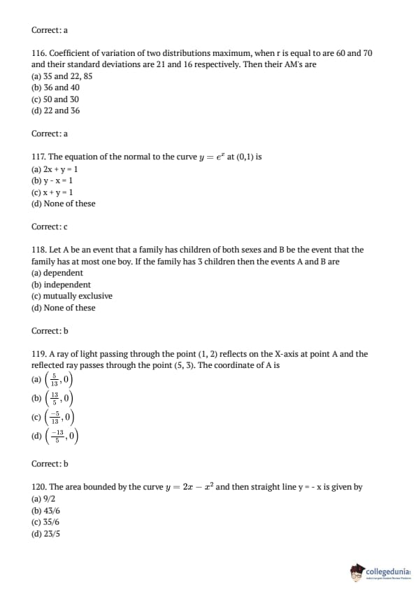 AMUEEE 2016 Mathematics Question paper with answer key pdf conducted on April 24, 2016 is available for download. The exam was successfully organized by Aligarh Muslim University. The question paper comprised a total of 50 questions.