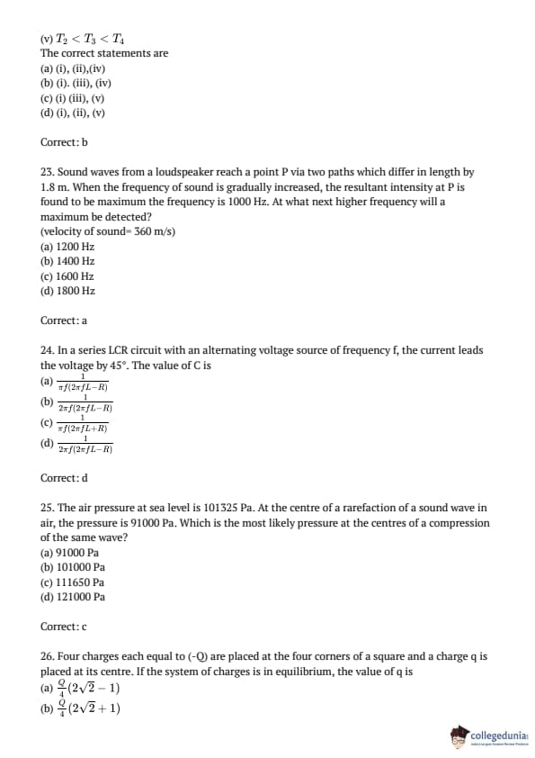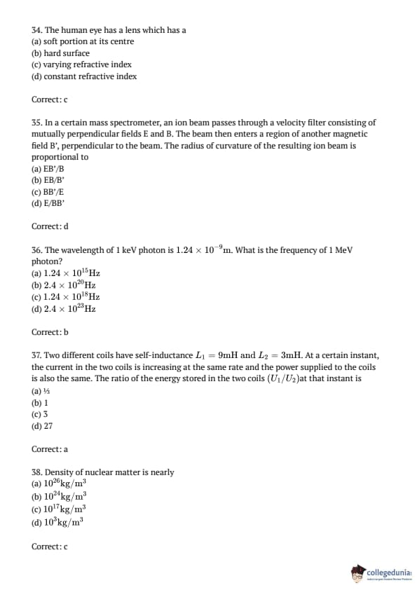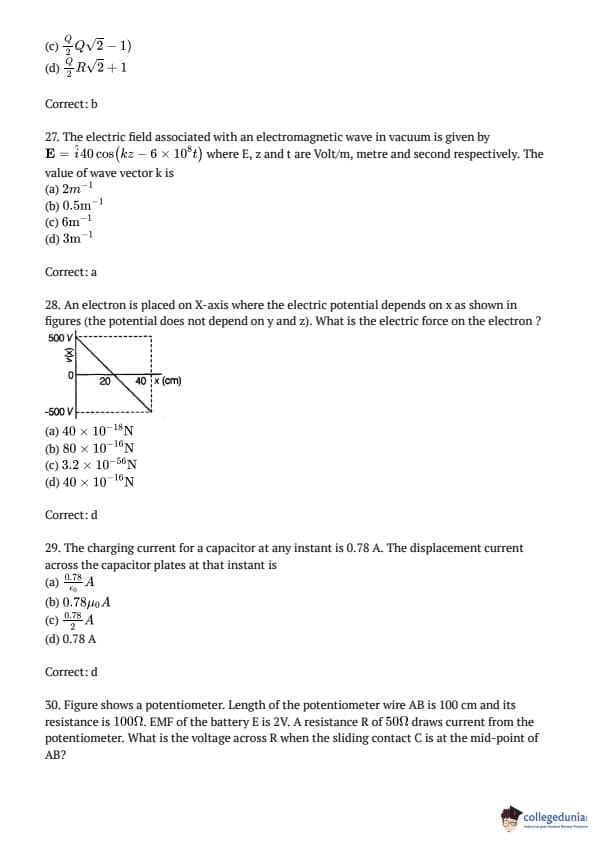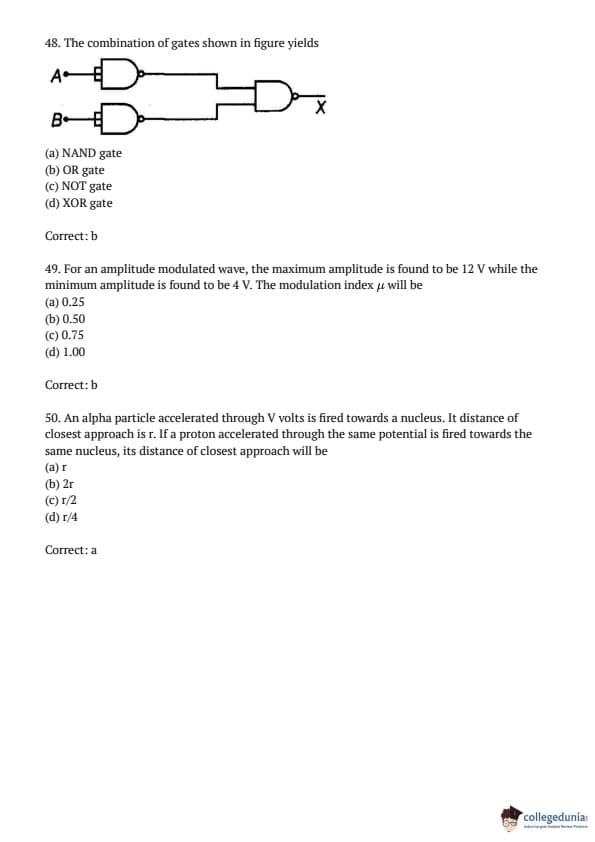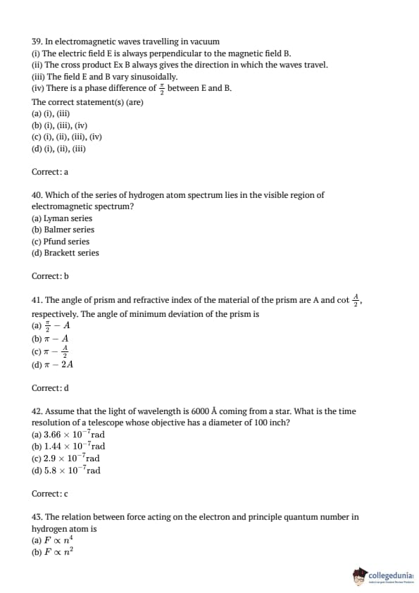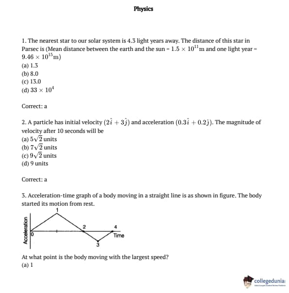 AMUEEE 2016 Physics Question paper with answer key pdf conducted on April 24, 2016 is available for download. The exam was successfully organized by Aligarh Muslim University. The question paper comprised a total of 50 questions.