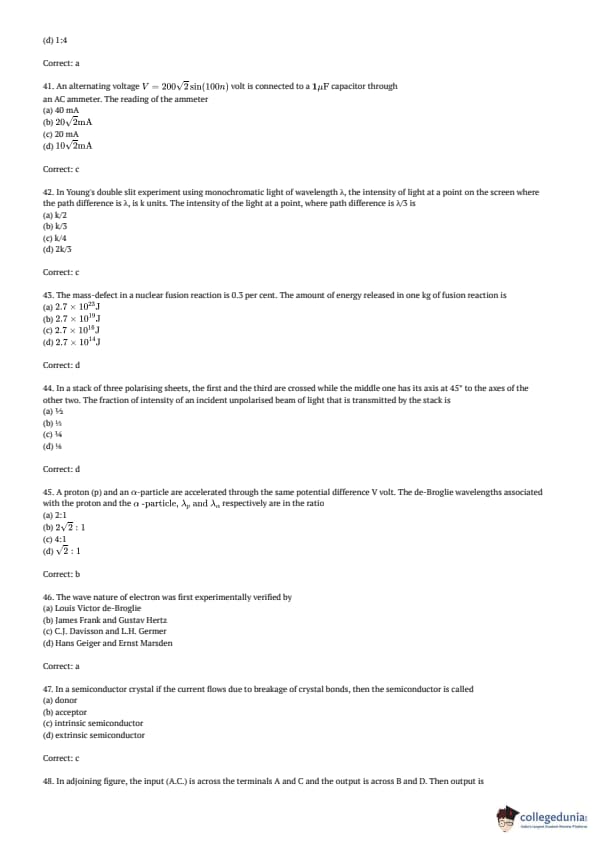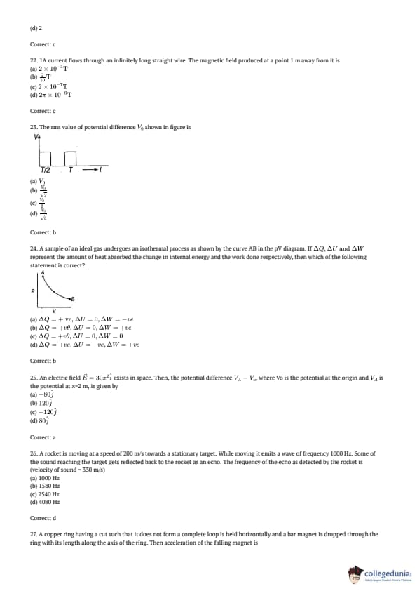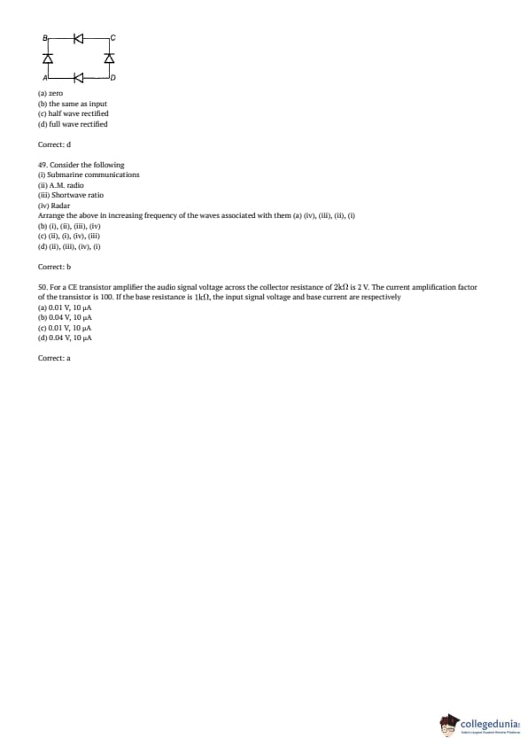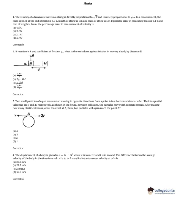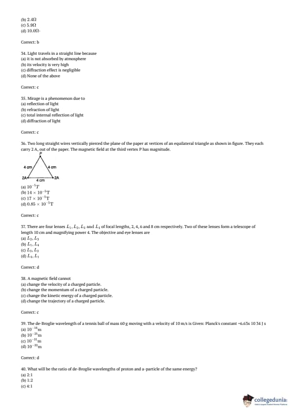 AMUEEE 2017 Physics Question paper with answer key pdf conducted on April 30, 2017 is available for download. The exam was successfully organized by Aligarh Muslim University. The question paper comprised a total of 50 questions.