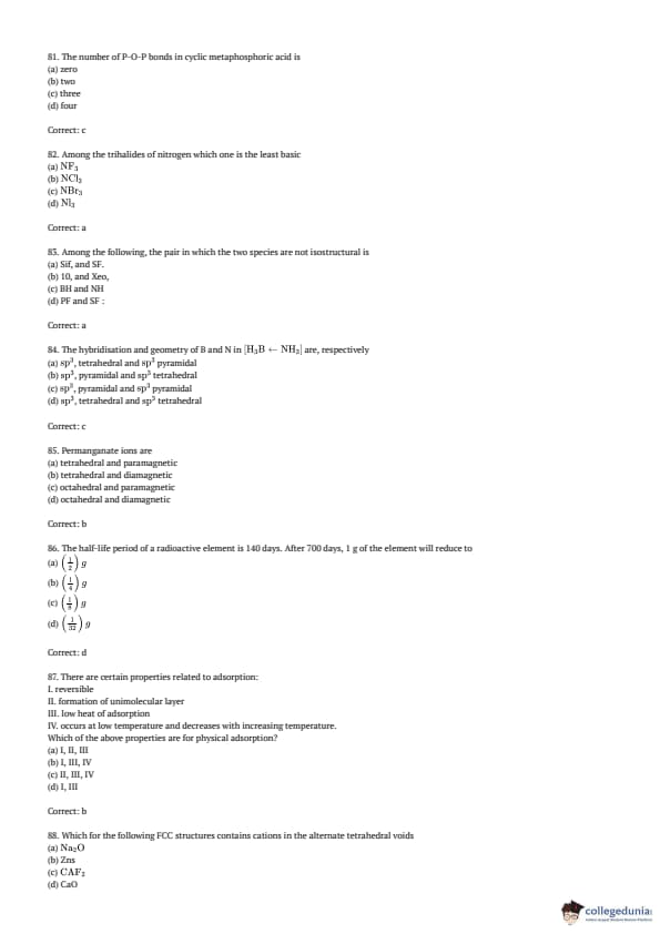 AMUEEE 2018 Chemistry Question paper with answer key pdf conducted on April 29, 2018 is available for download. The exam was successfully organized by Aligarh Muslim University. The question paper comprised a total of 50 questions.