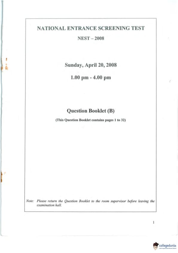 | NEST 2008 Question Paper PDF | NEST 2008 Answer Key PDF |