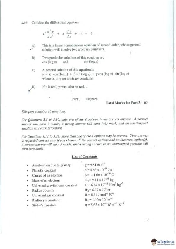 NEST 2008 Question Paper with Answer Key PDFs Afternoon Session