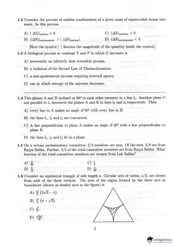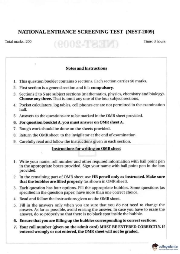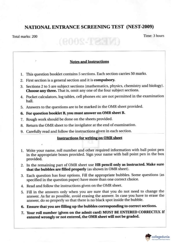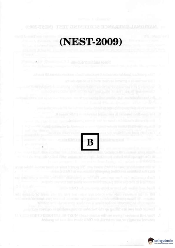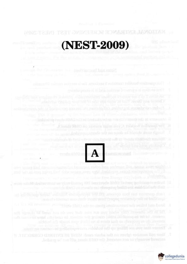 | NEST 2009 Question Paper PDF | NEST 2009 Answer Key PDF |