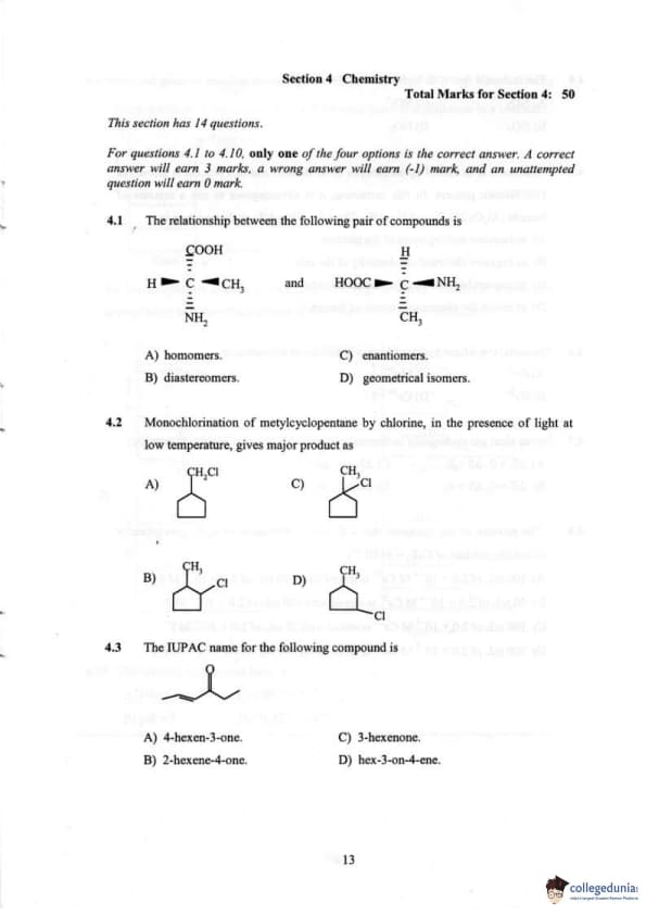 NEST 2009 Question Paper with Answer Key PDFs Afternoon Session