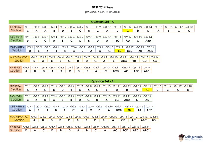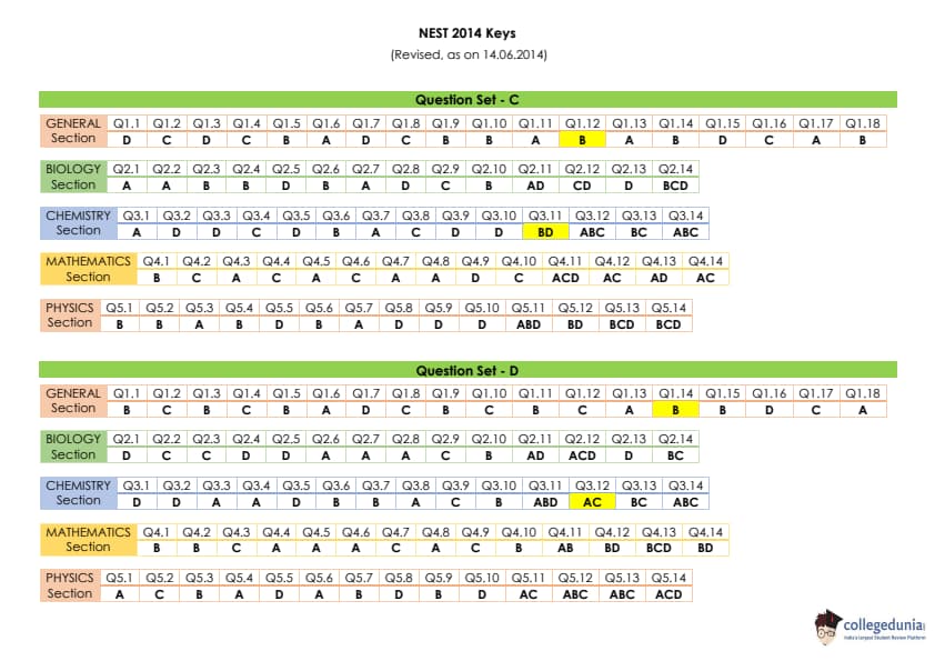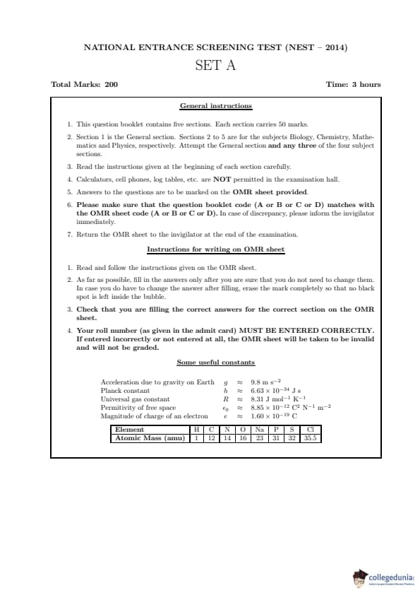 | NEST 2014 Question Paper PDF | NEST 2014 Answer Key PDF |