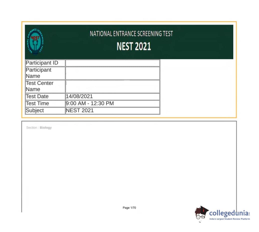 | NEST 2021 Question Paper PDF | NEST 2021 Answer Key PDF |