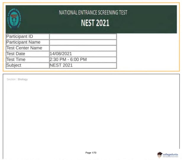 | NEST 2021 Question Paper PDF | NEST 2021 Answer Key PDF |