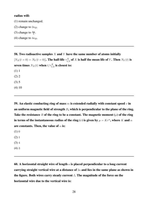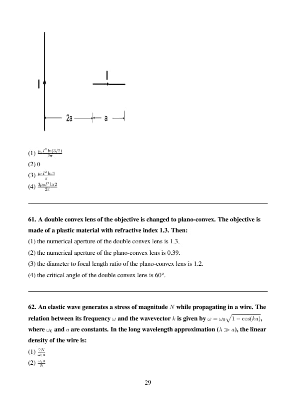 Stress and Wave Propagation: The stress \( N \) in the wire affects how quickly the wave can propagate. Higher stress leads to faster wave propagation, resulting in a smaller linear density for the wire. Quick Tip: In problems involving wave propagation in materials, the linear density \( \mu \) is crucial for determining how quickly waves travel through the medium. A higher linear density means slower wave propagation.