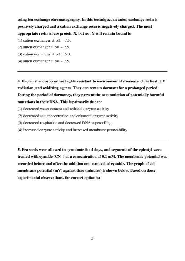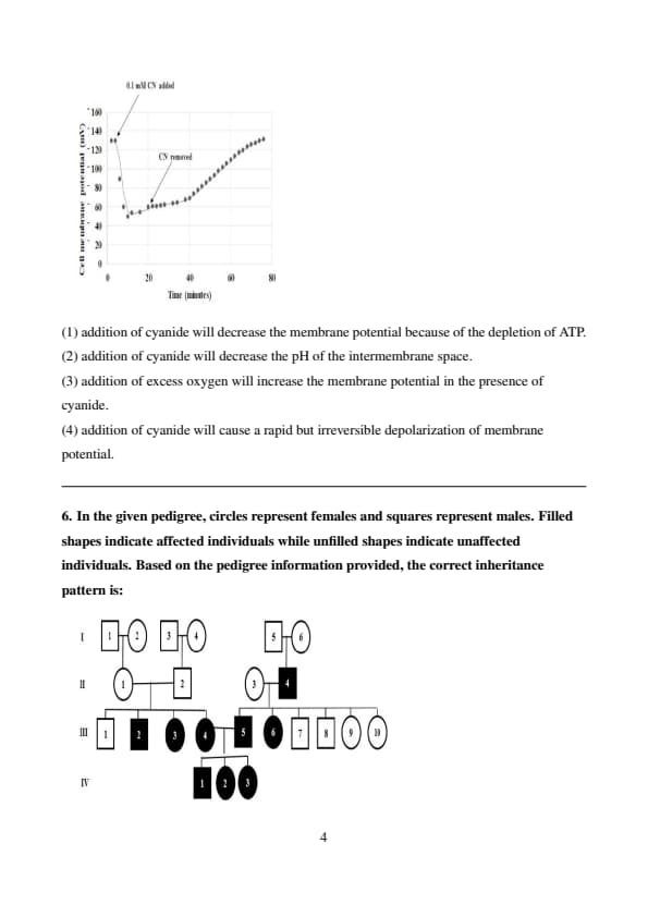 Therefore, the correct option is (1), as cyanide decreases ATP production, leading to a decrease in membrane potential. Quick Tip: When analyzing membrane potential changes, consider the role of ATP-dependent ion pumps and the effects of inhibitors like cyanide.