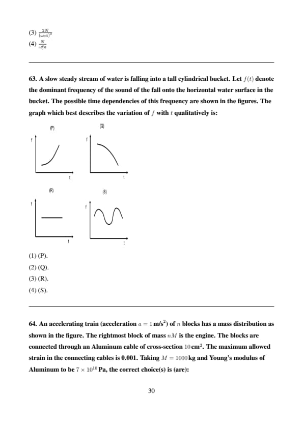 Therefore, the correct option is (1), as graph (P) shows \( f \) increasing with \( t \), consistent with the decreasing air column length. Quick Tip: When analyzing sound frequency in air columns: