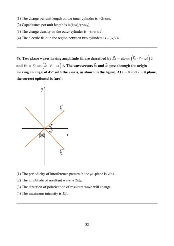 Therefore, the correct options are (1) and (4), as the charge per unit length and electric field match the derived values. Quick Tip: When solving electrostatics problems with cylindrical symmetry: