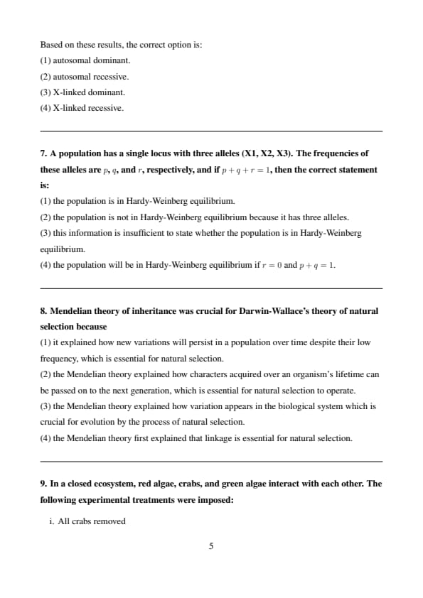 Mendelian theory was crucial for Darwin-Wallace's theory of natural selection because it provided the mechanism for the maintenance of heritable variation within populations, allowing natural selection to act upon these persistent variations over time. Quick Tip: Remember that Darwin's theory lacked a clear mechanism for inheritance. Mendel's work provided that mechanism, explaining how genetic variation could be maintained and not lost through blending.