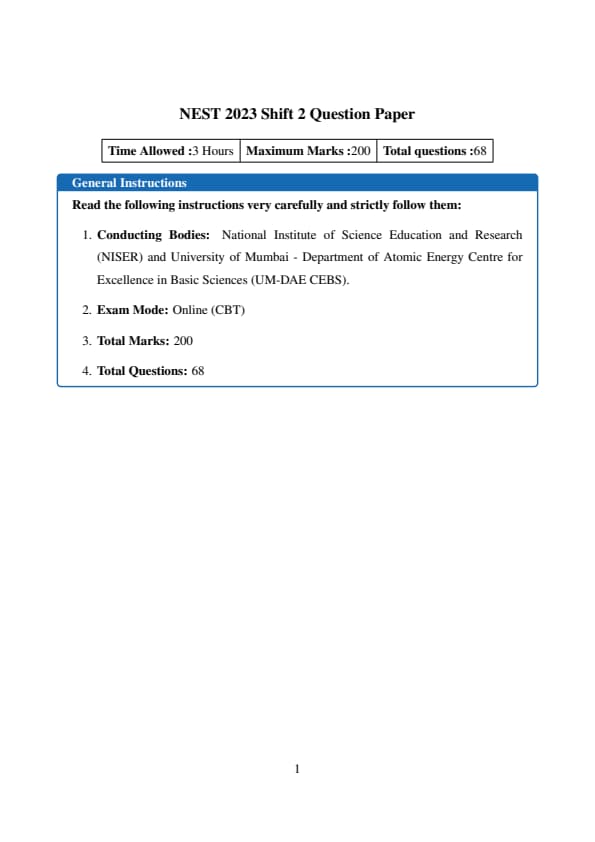 | NEST 2023 Session 2 Question Paper with Answer Key | Check Solutions |
