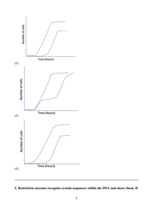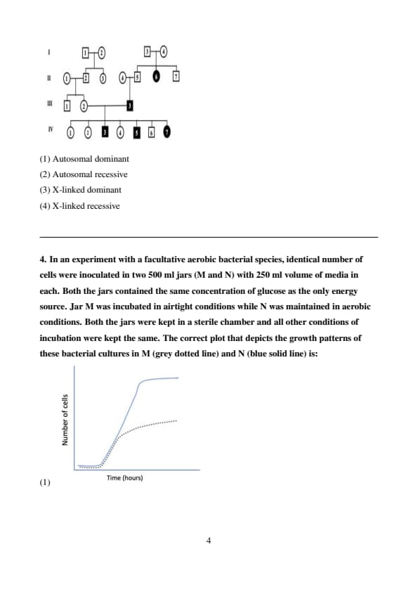 The correct plot that reflects this difference in growth patterns is the first diagram, where the solid line (N) shows a faster growth rate compared to the dotted line (M), which is slower. Quick Tip: In experiments involving aerobic and anaerobic conditions: - Aerobic conditions typically promote faster bacterial growth due to the availability of oxygen for respiration. - Anaerobic conditions limit growth due to the absence of oxygen, forcing bacteria to rely on less efficient metabolic pathways.