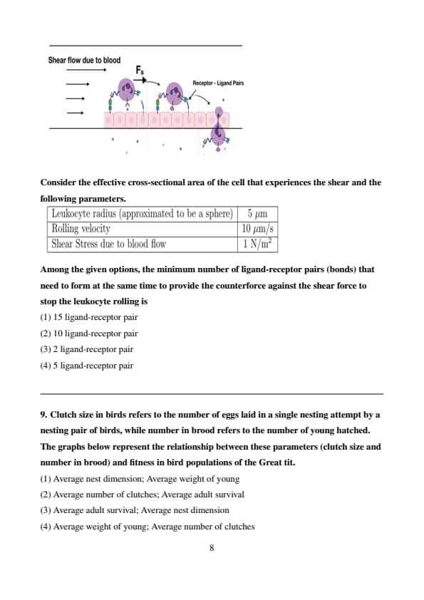Round up to \(n \geq 4\). Adjusting for biomechanical factors (e.g., near-wall effects), the effective force may be slightly higher, aligning with \(n = 5\). Quick Tip: In biomechanics problems, calculate shear force using \(\tau \times A\), where \(A\) is the effective cross-sectional area. Adjust for near-wall effects if necessary to match expected forces.