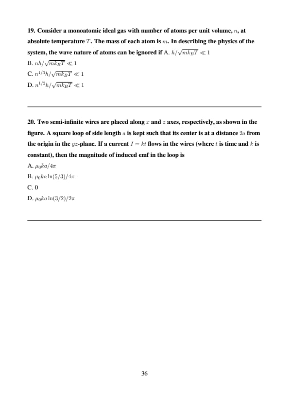 Consider a monoatomic ideal gas with number of atoms per unit volume, \(n\), at absolute temperature \(T\). The mass of each atom is \(m\). In describing the physics of the system, the wave nature of atoms can be ignored if