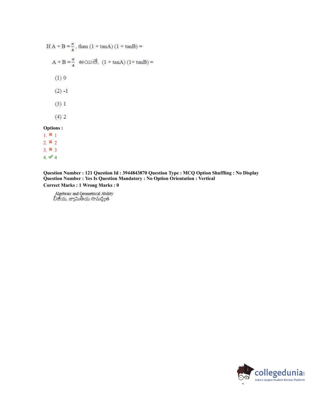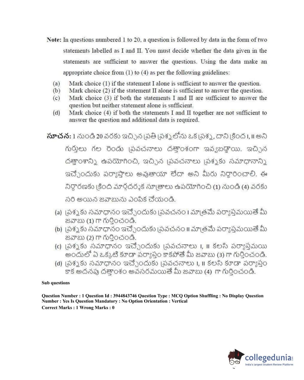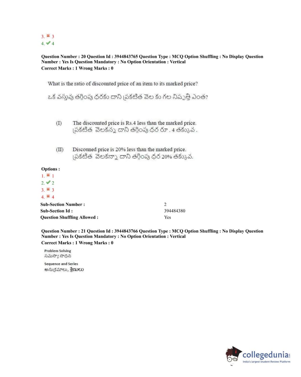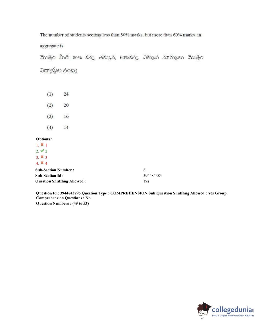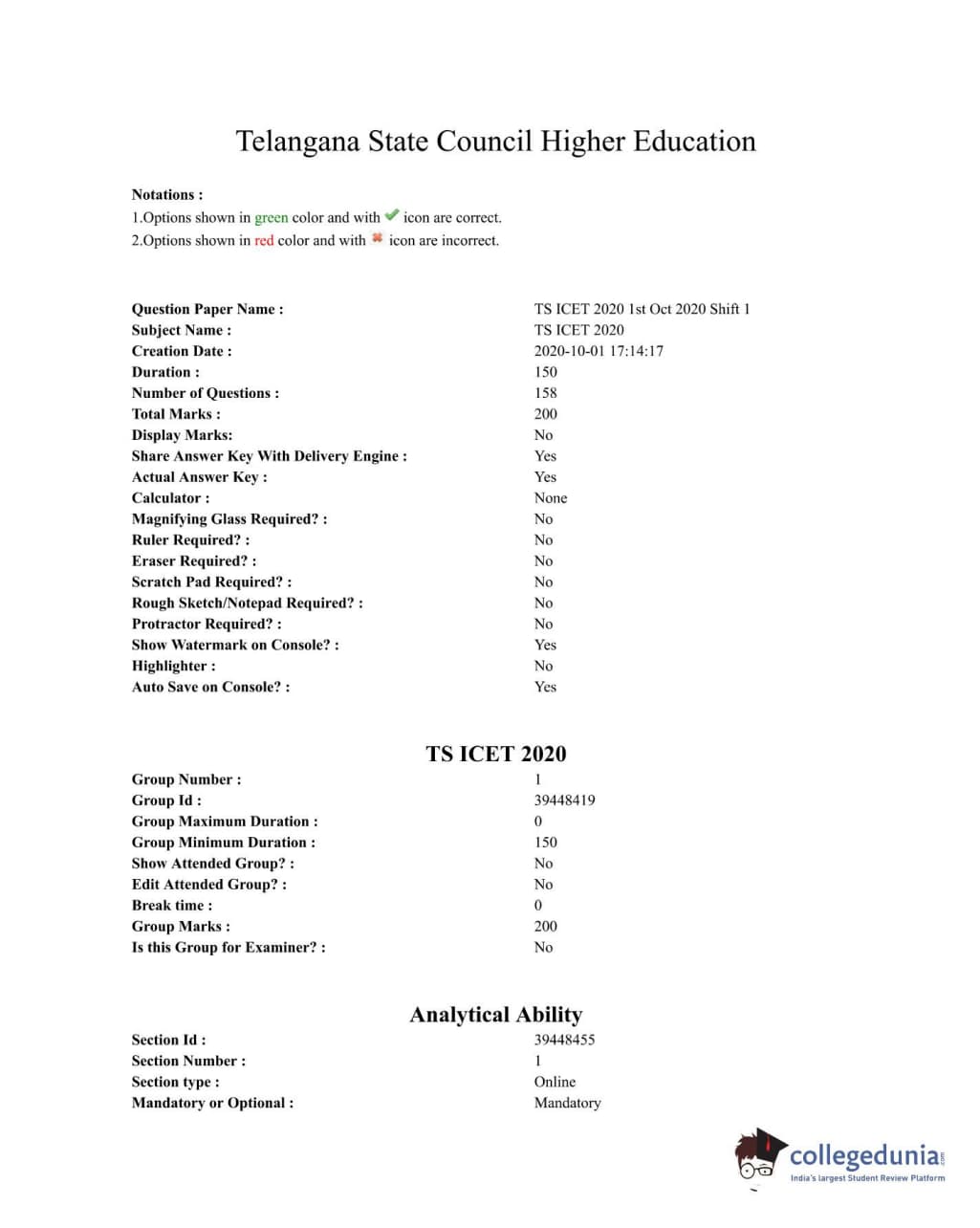 TSICET 2020 Question Paper with Answer Key PDFs Shift 1