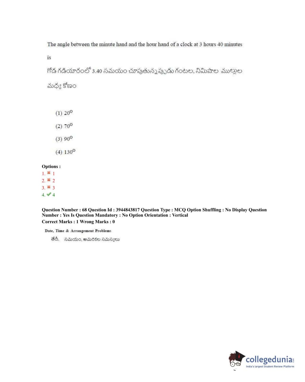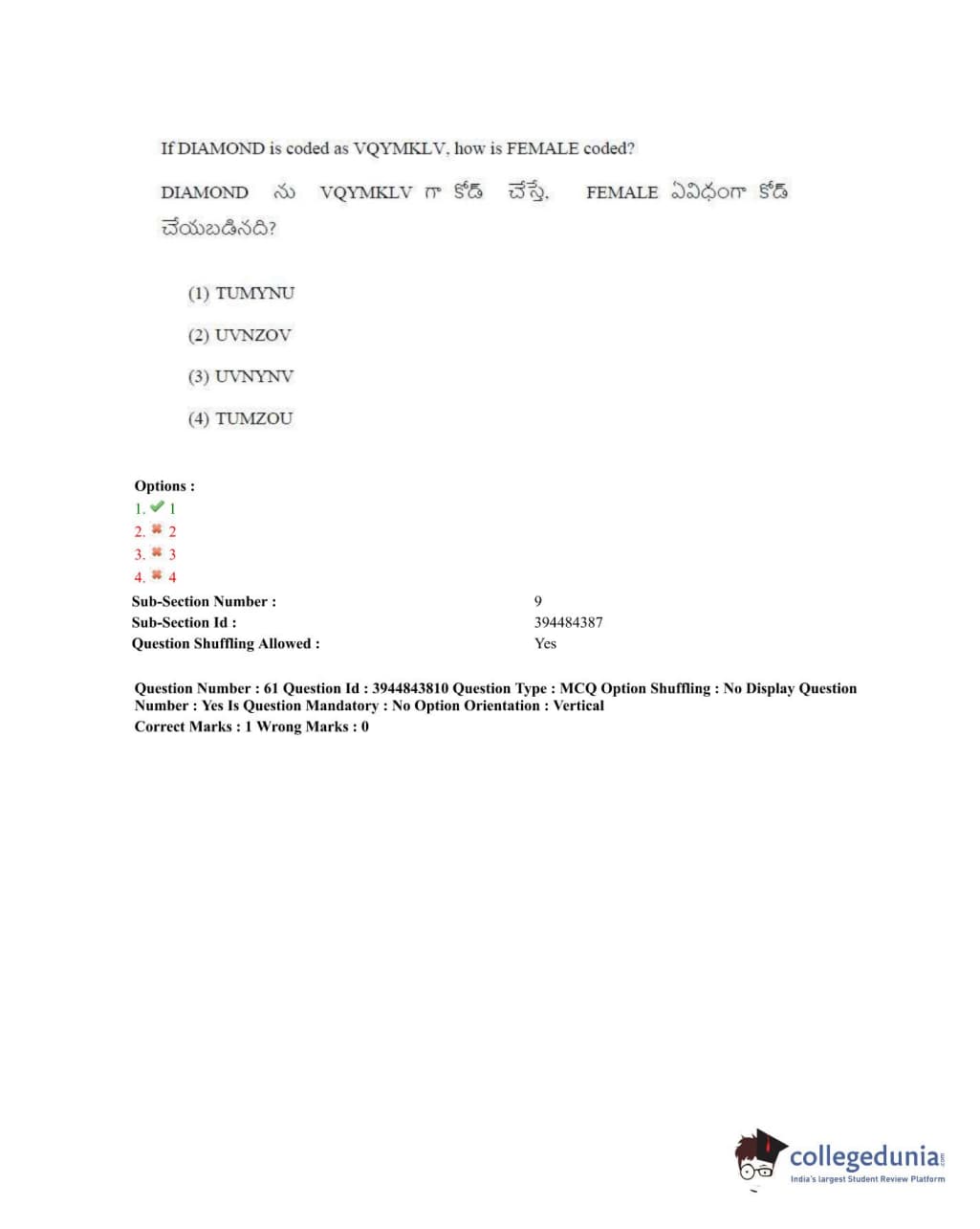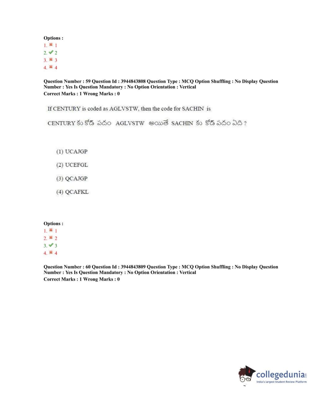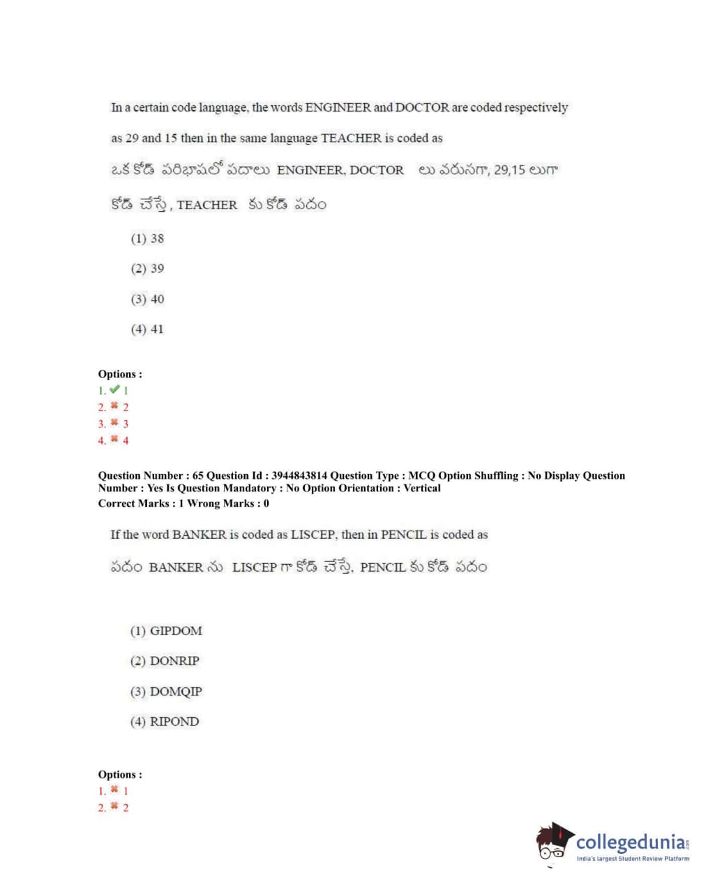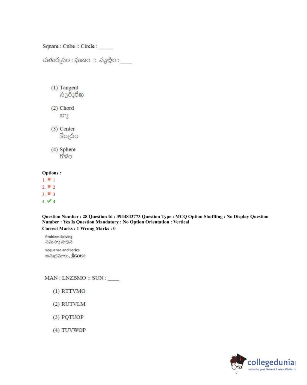 TSICET 2020 Question Paper with Answer Key PDFs Shift 1
