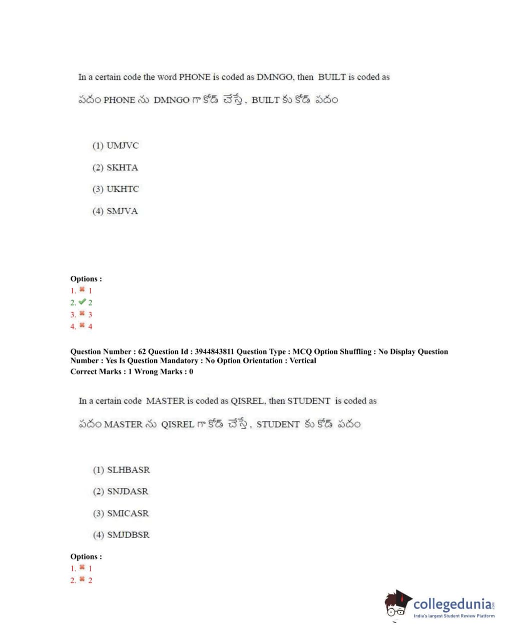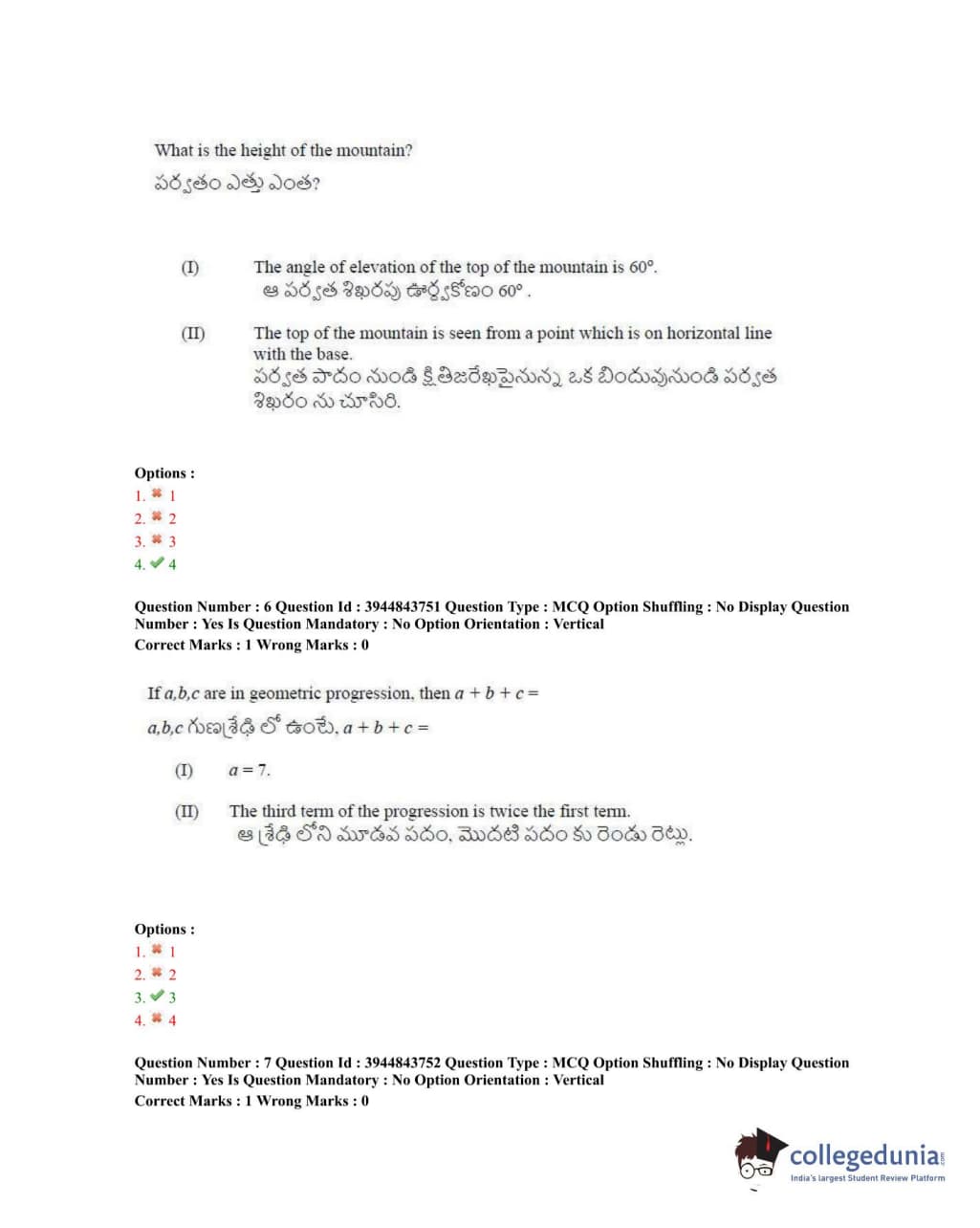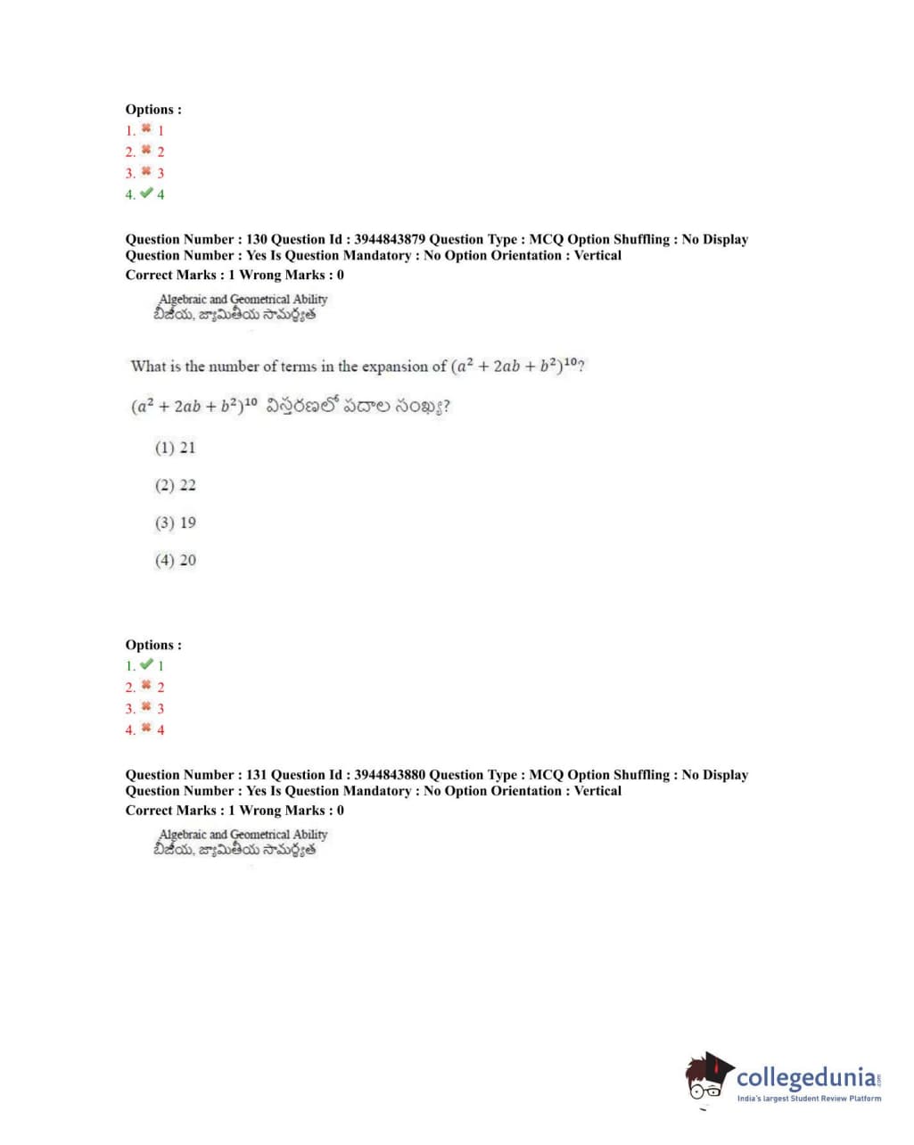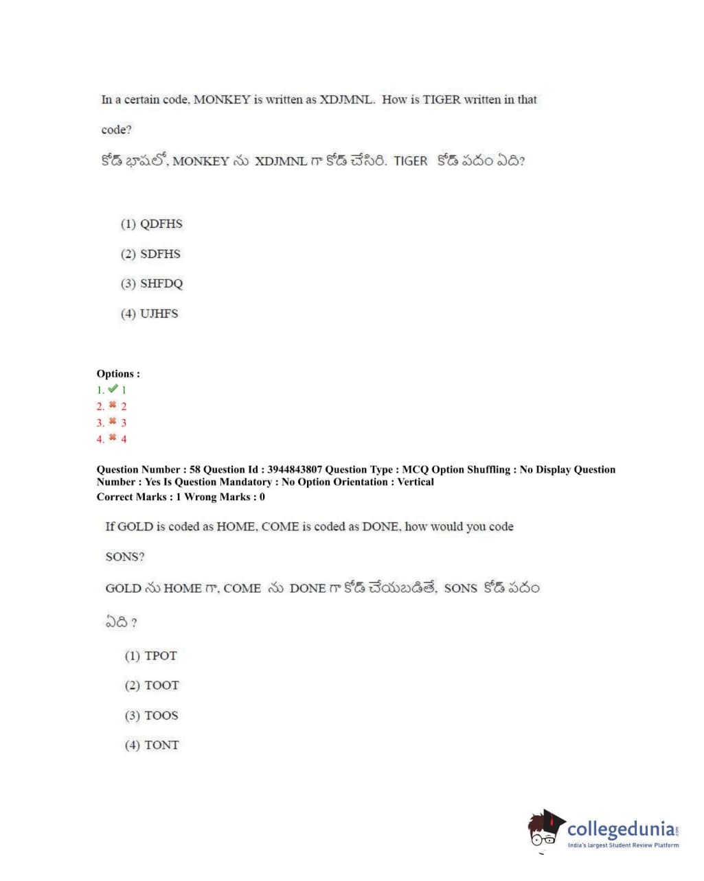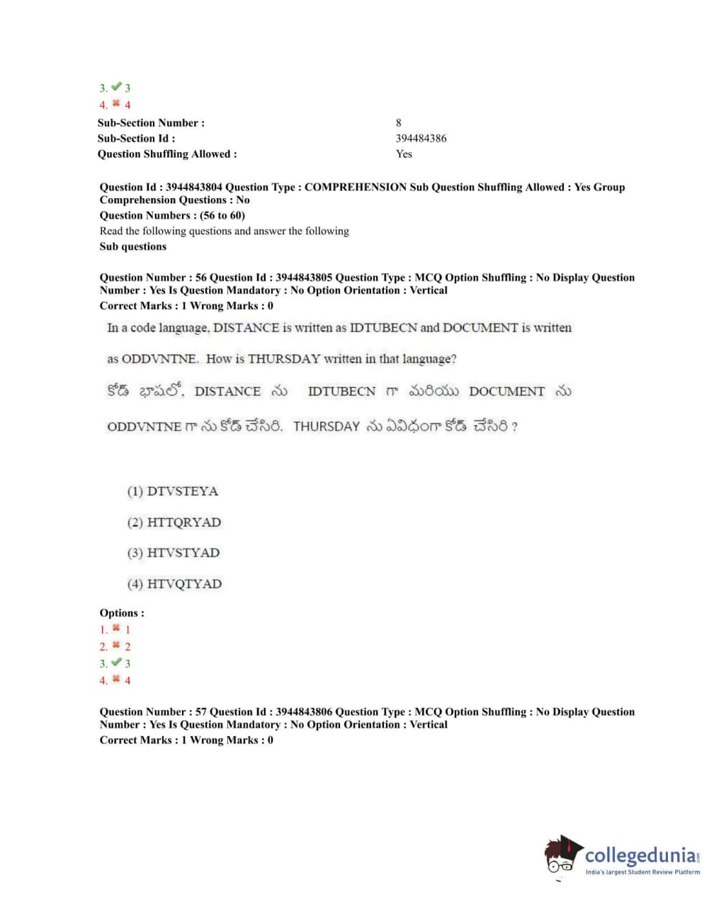 TSICET 2020 Question Paper with Answer Key PDFs Shift 1