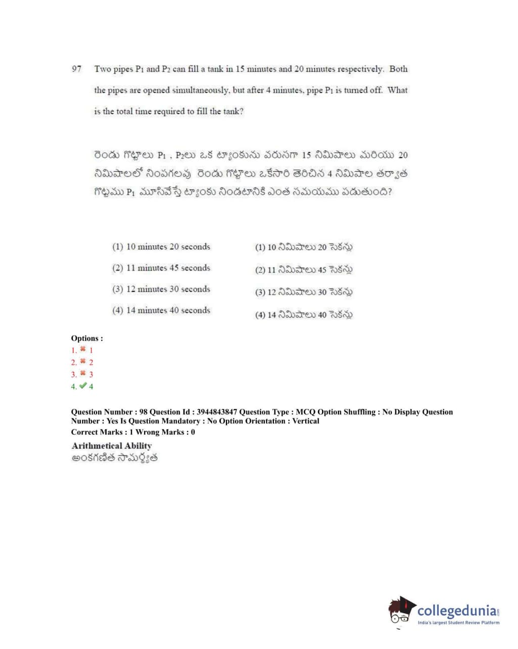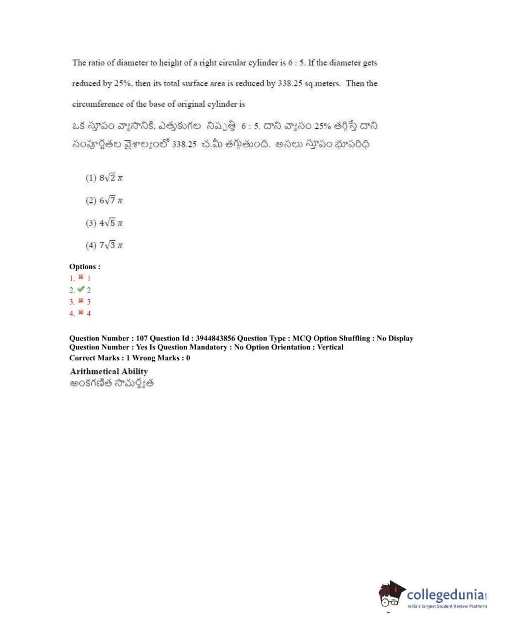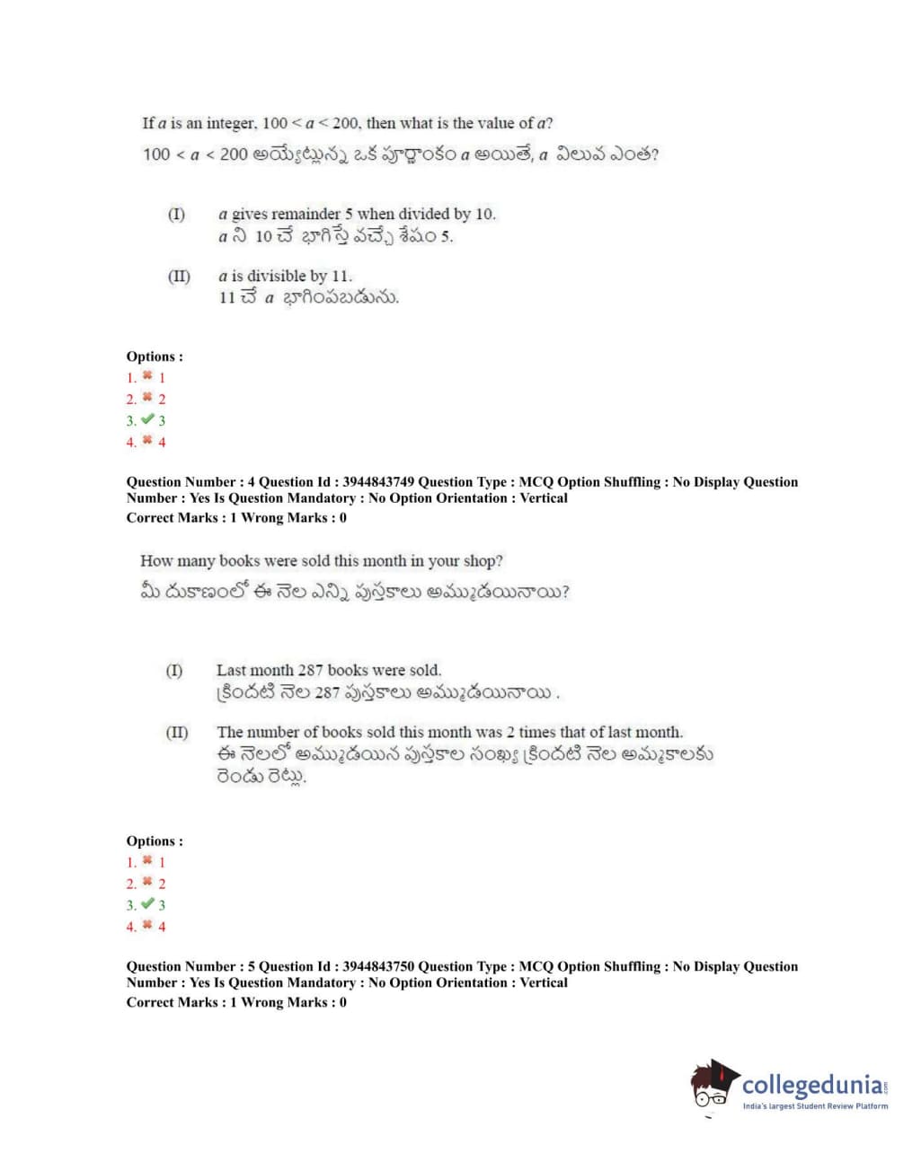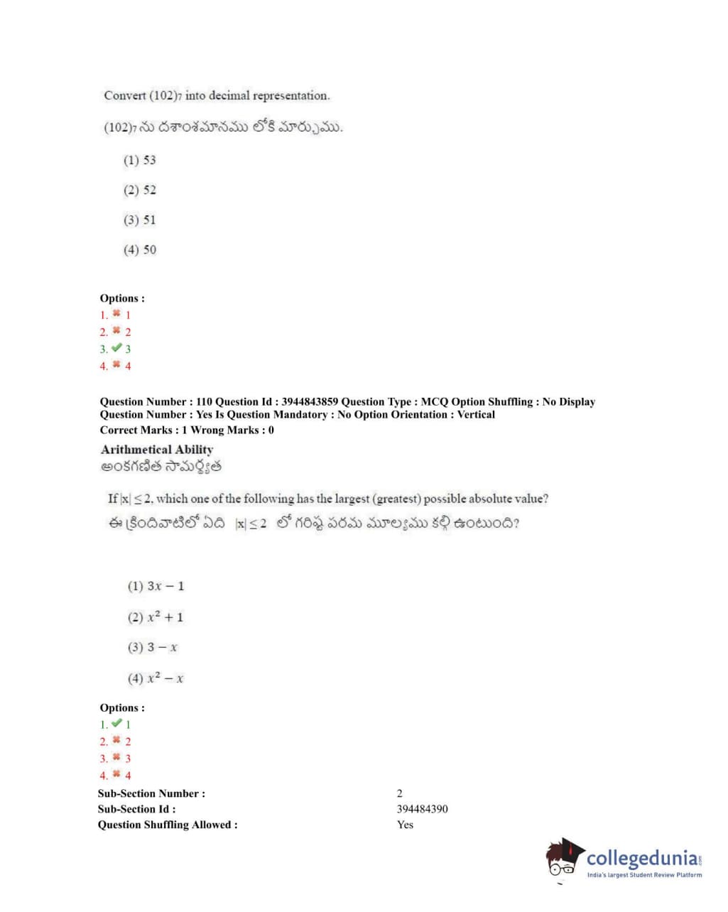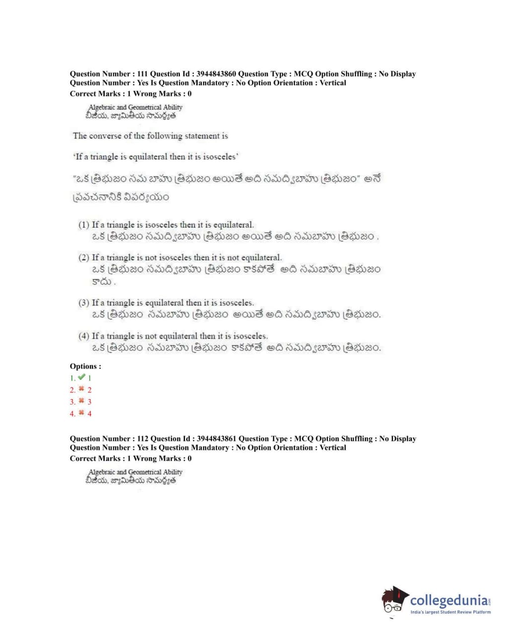 TSICET 2020 Question Paper with Answer Key PDFs Shift 1