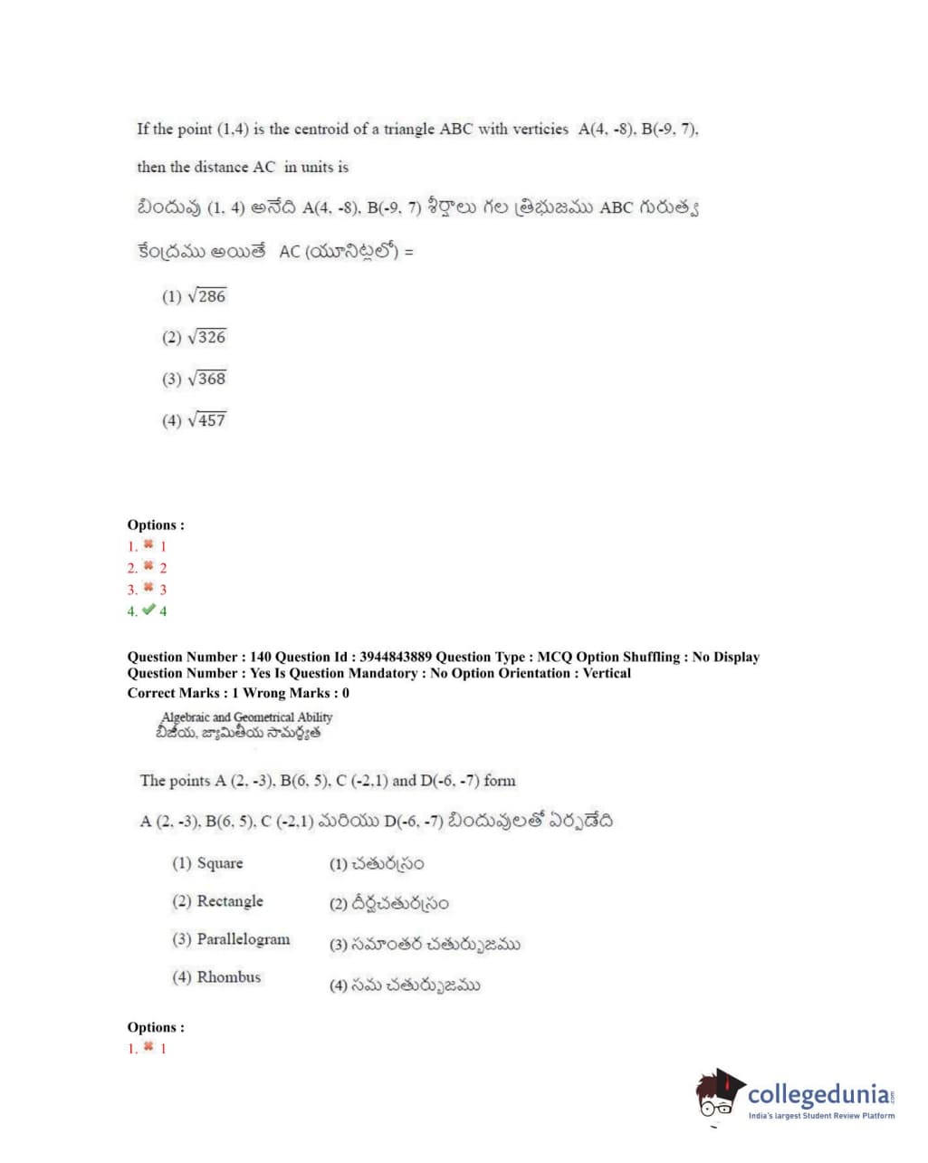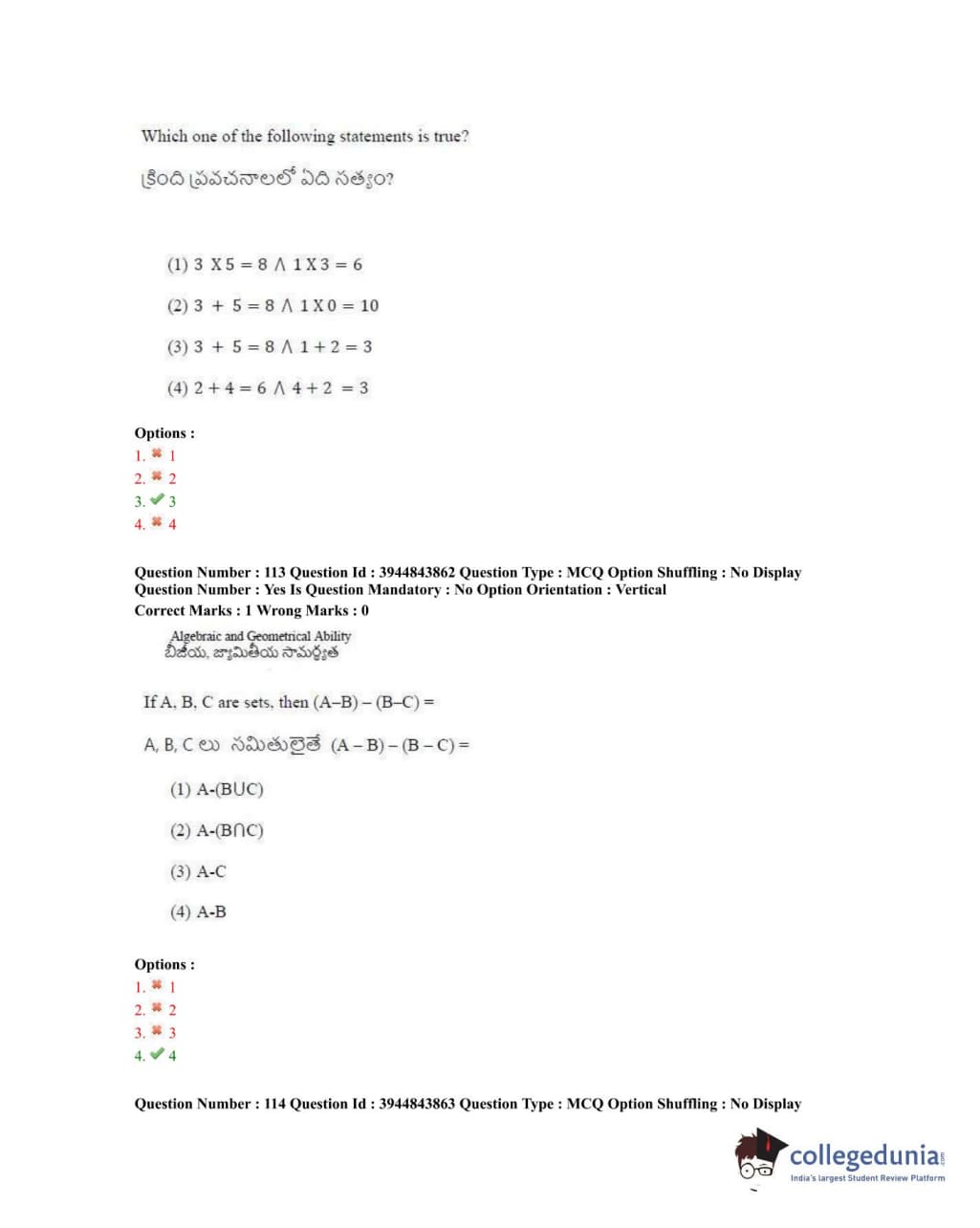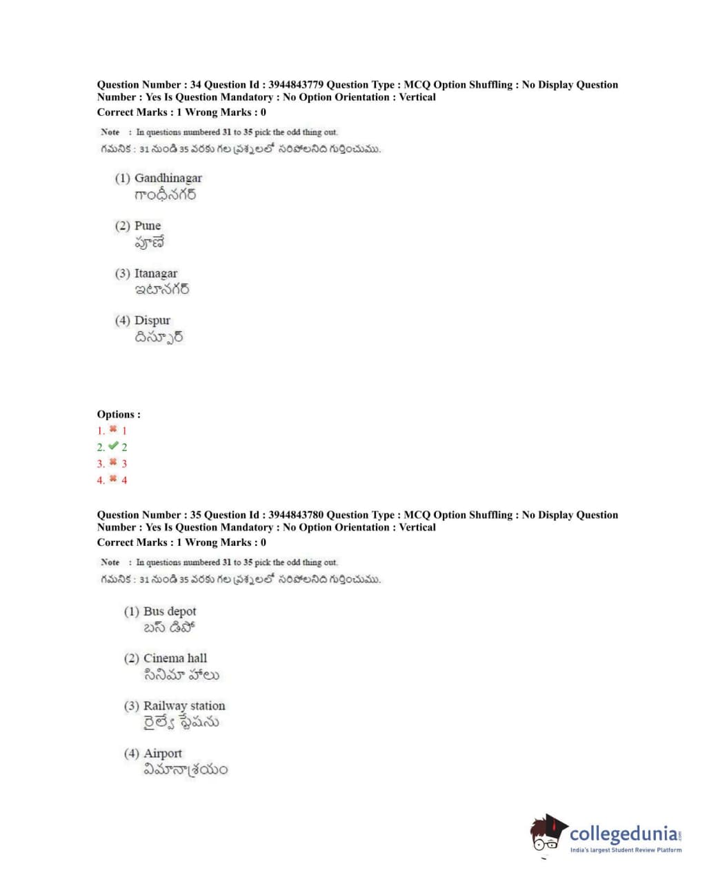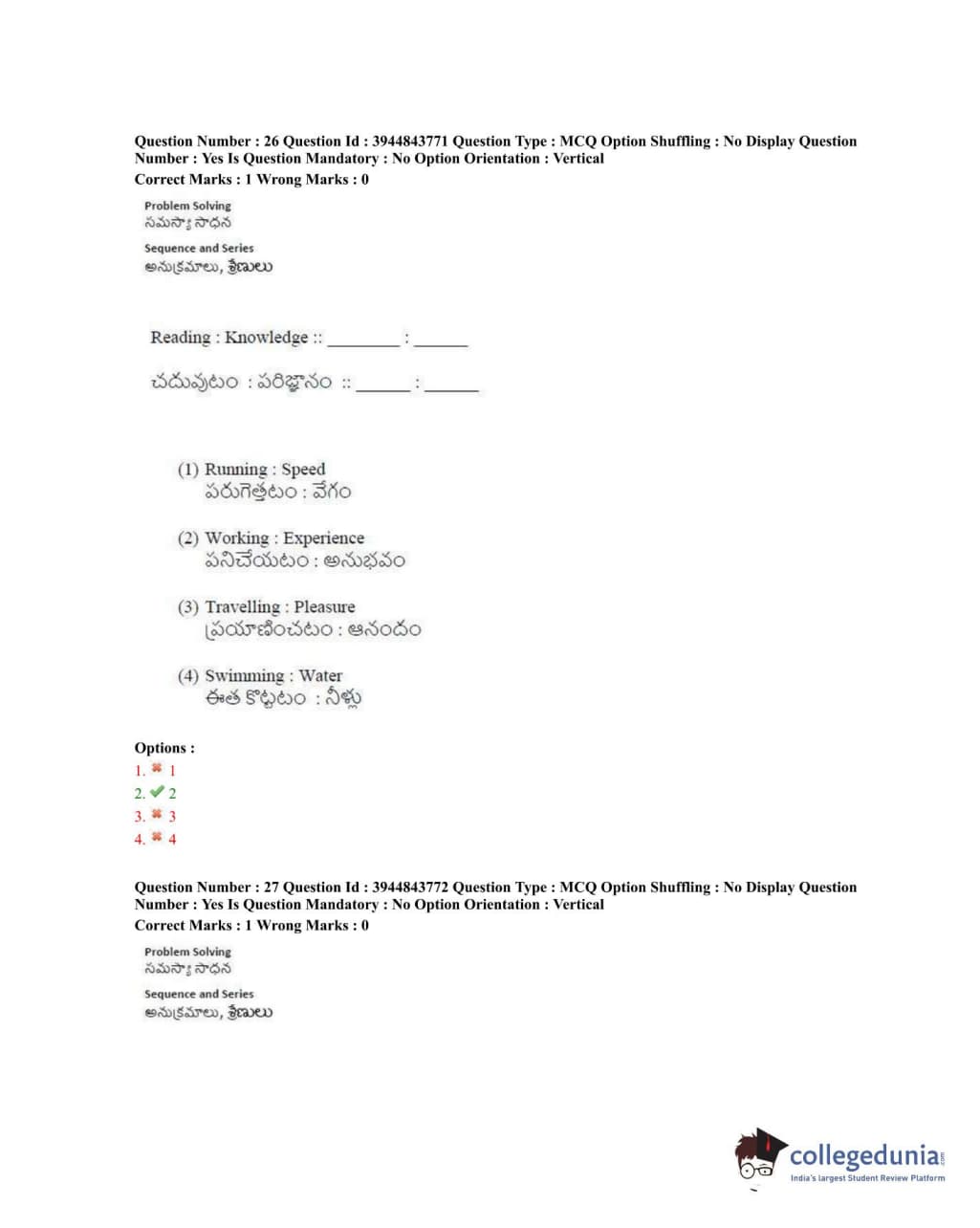 TSICET 2020 Question Paper with Answer Key PDFs Shift 1