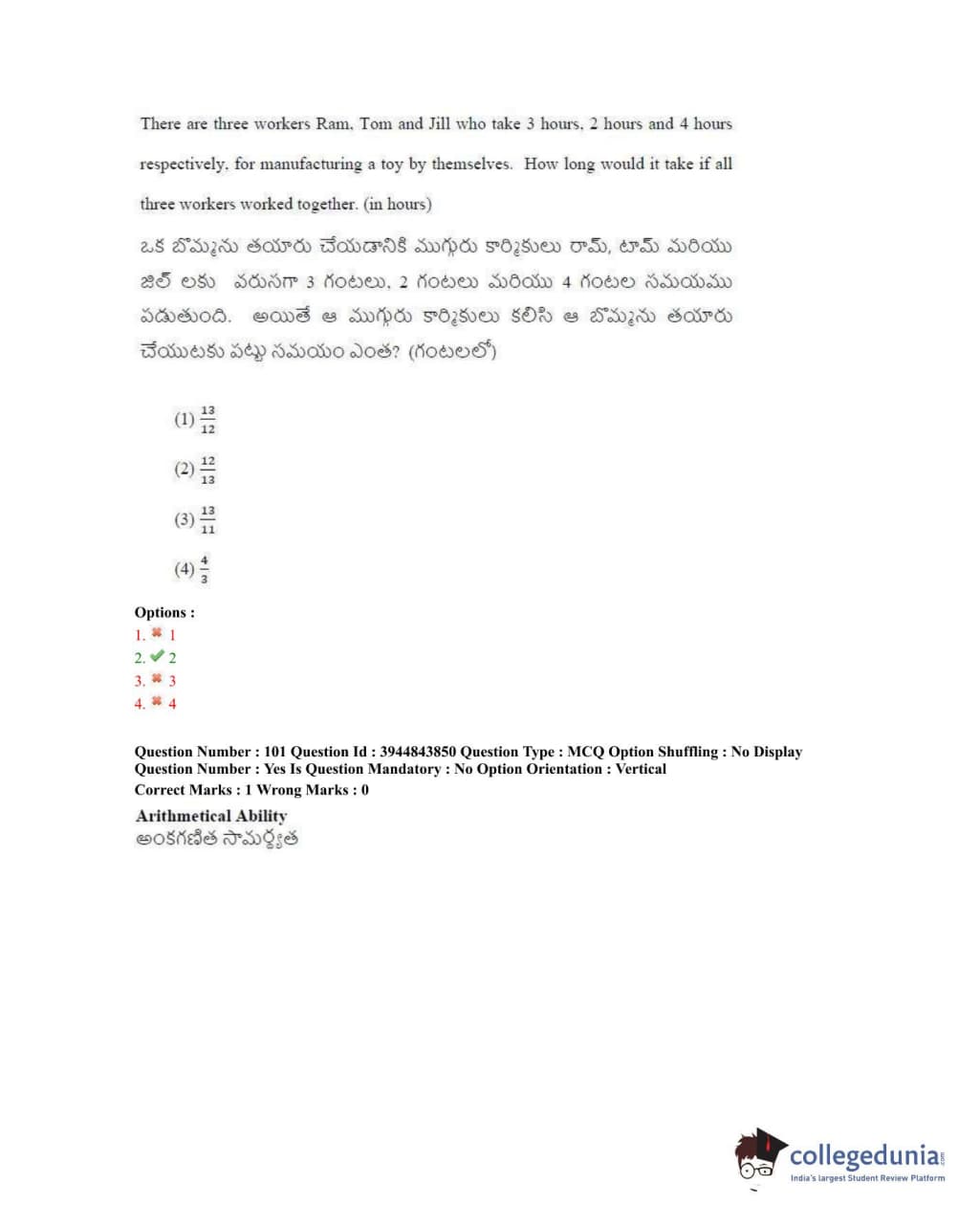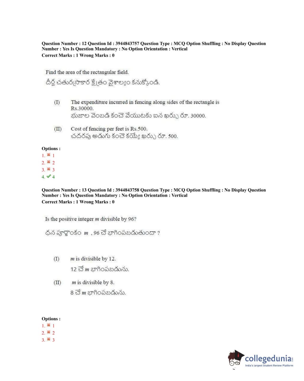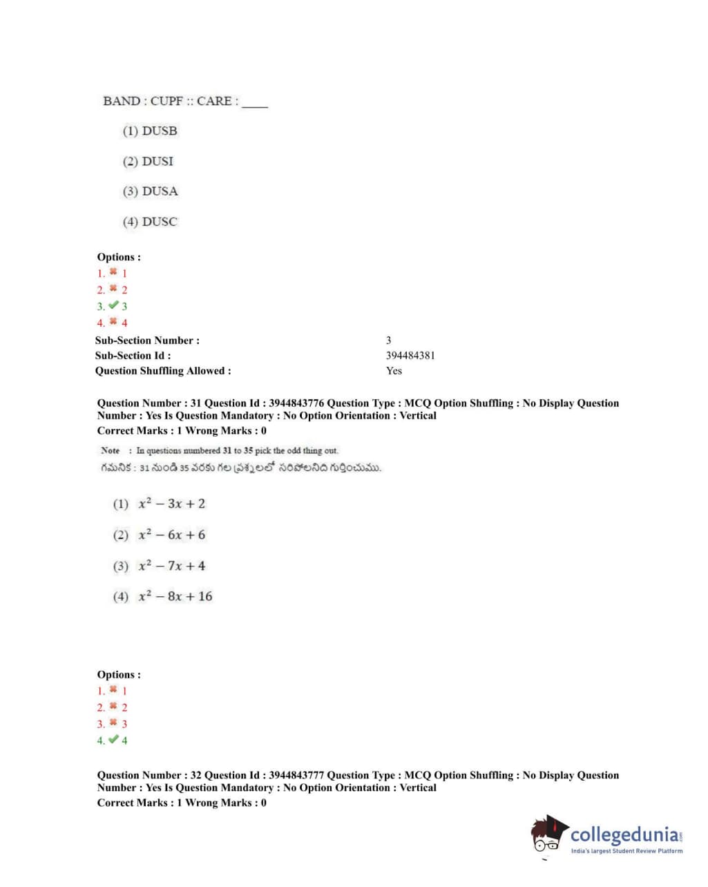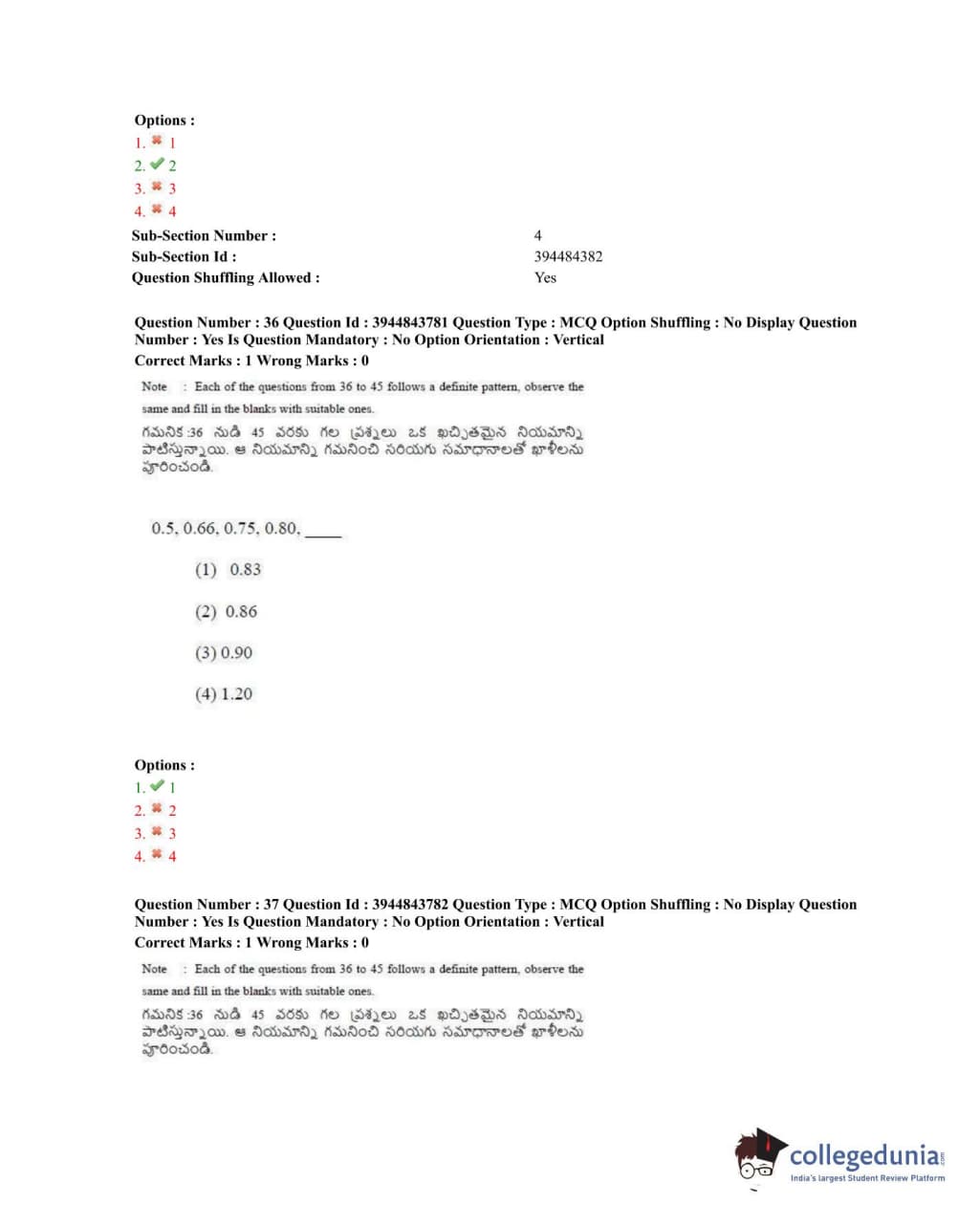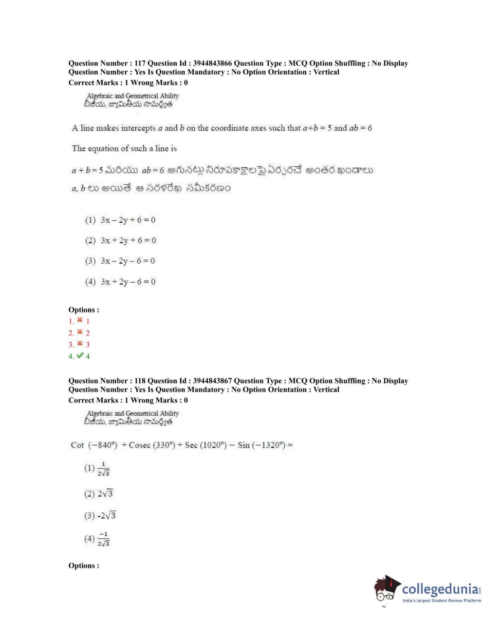 TSICET 2020 Question Paper with Answer Key PDFs Shift 1