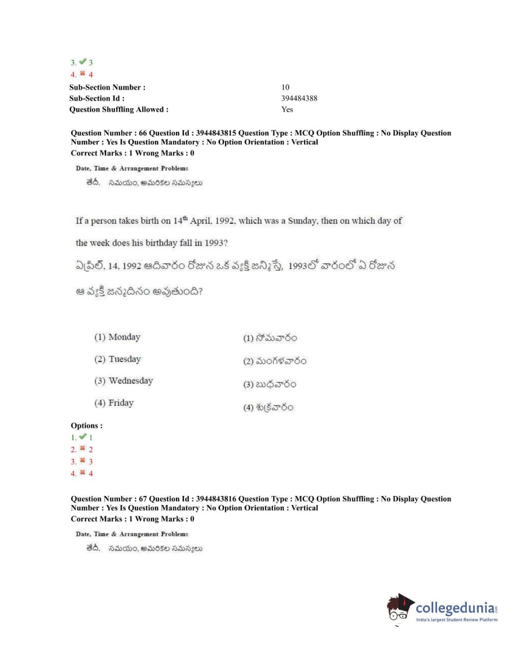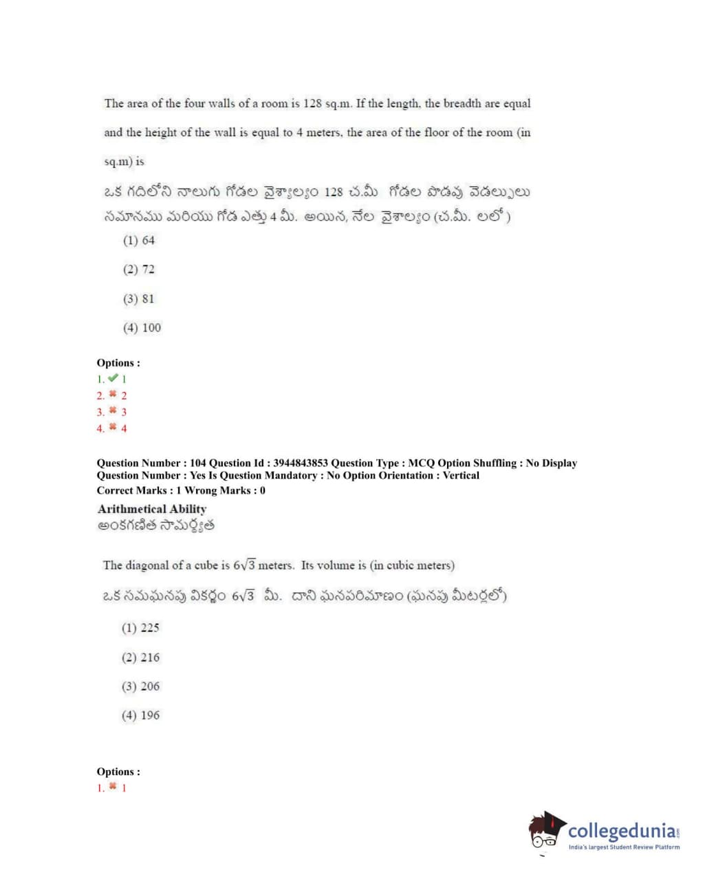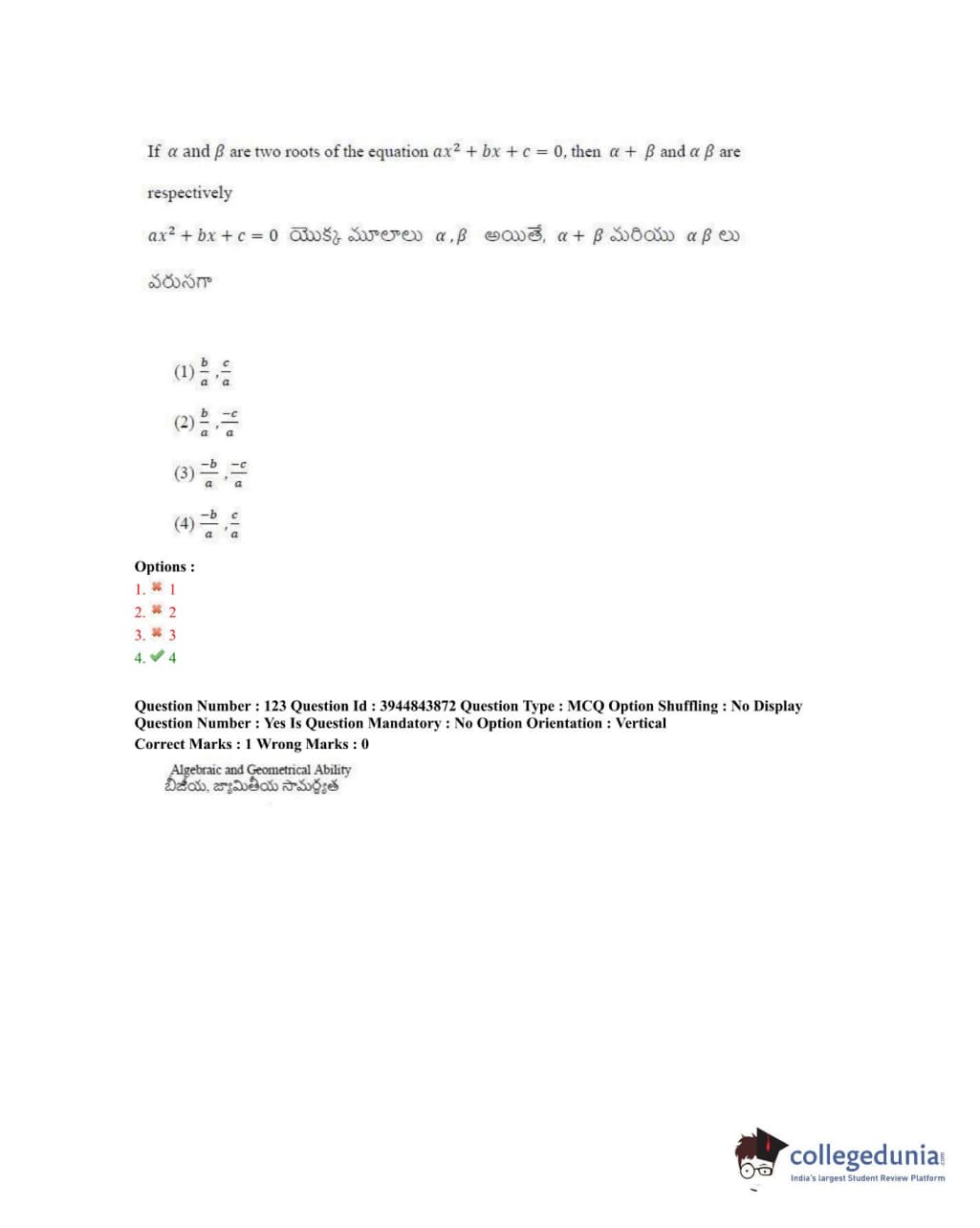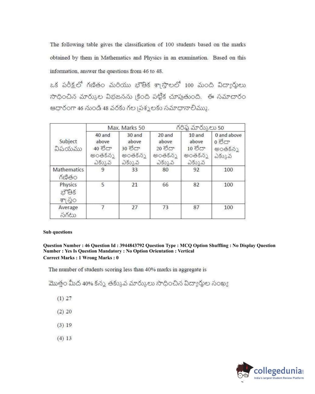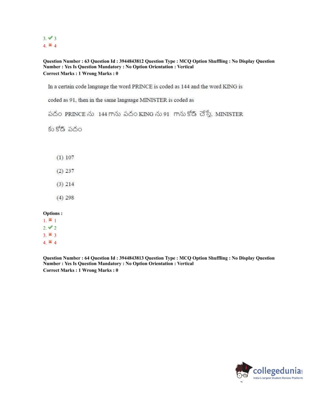 TSICET 2020 Question Paper with Answer Key PDFs Shift 1