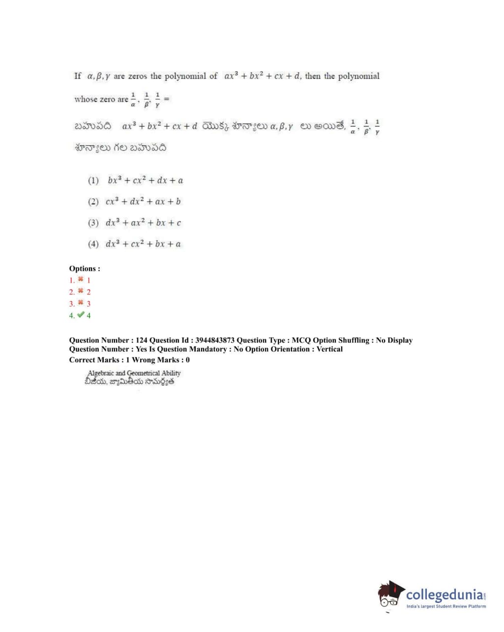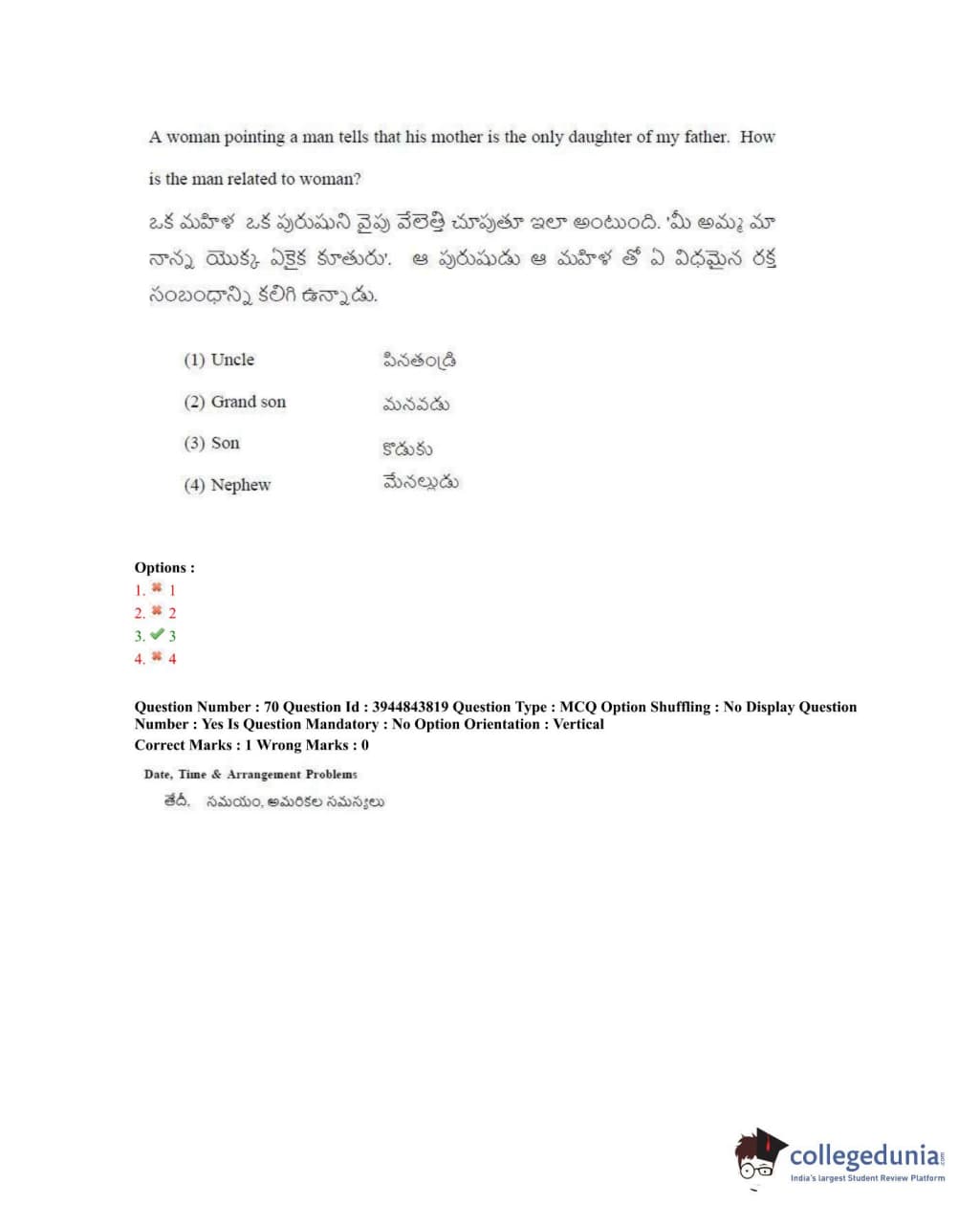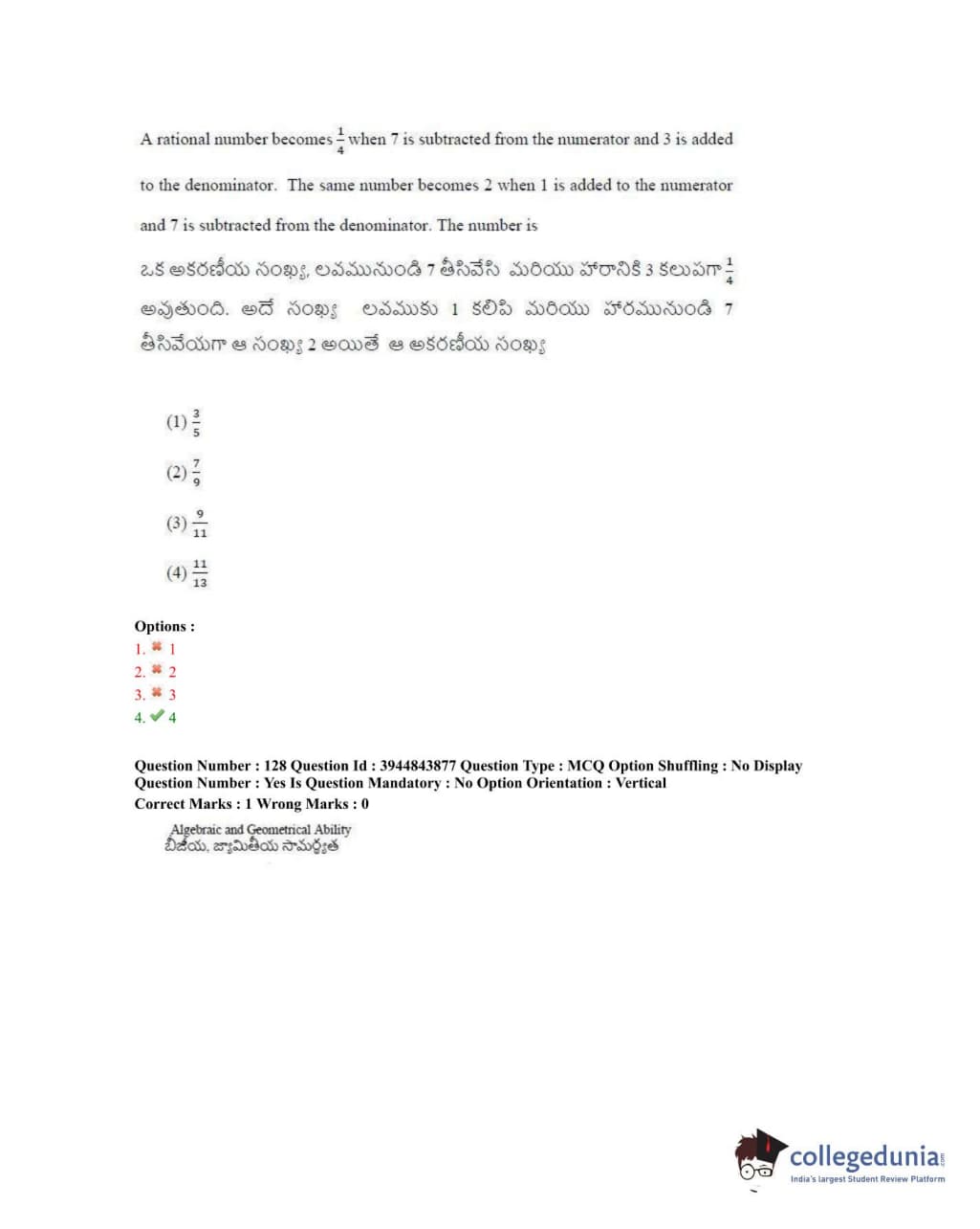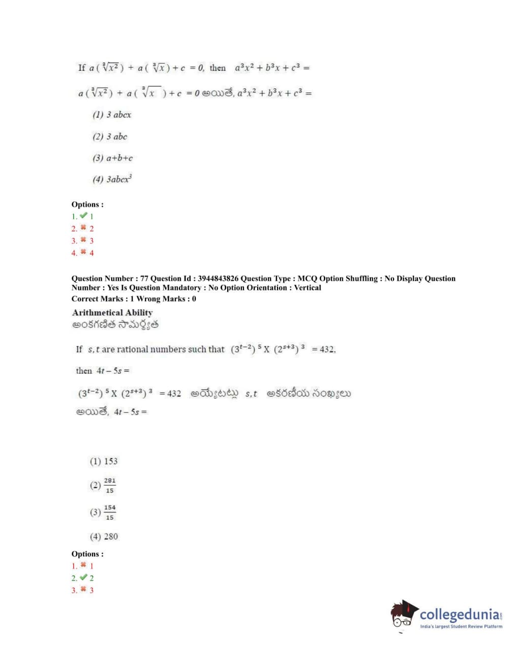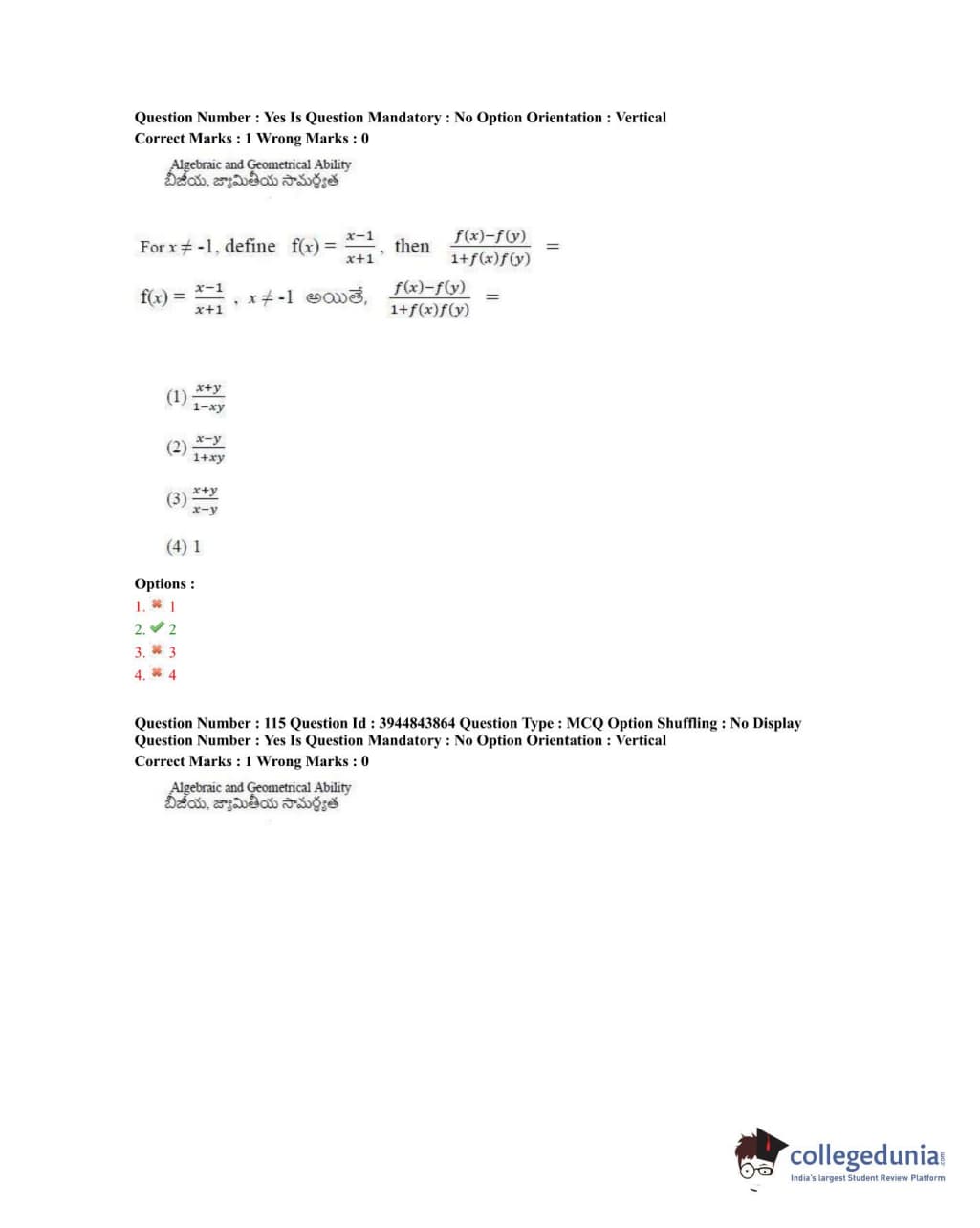 TSICET 2020 Question Paper with Answer Key PDFs Shift 1