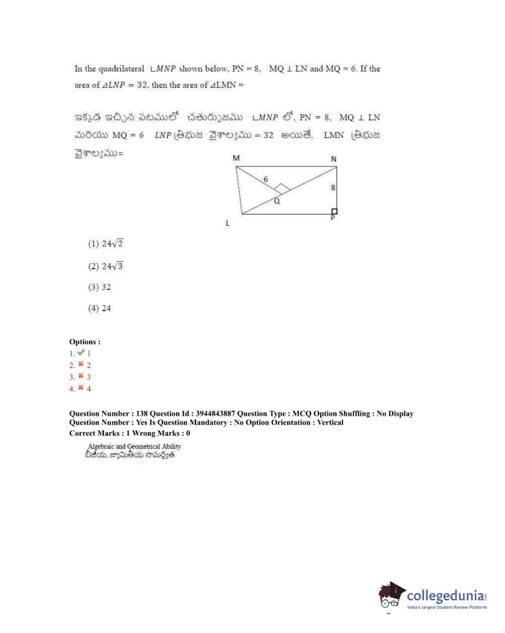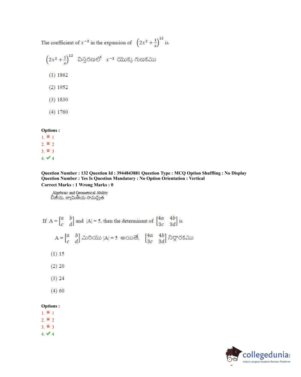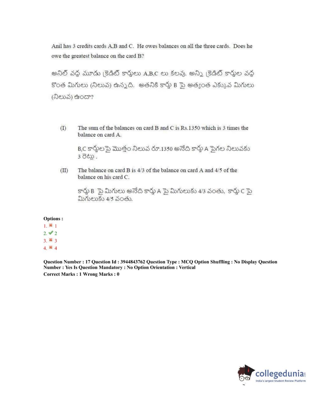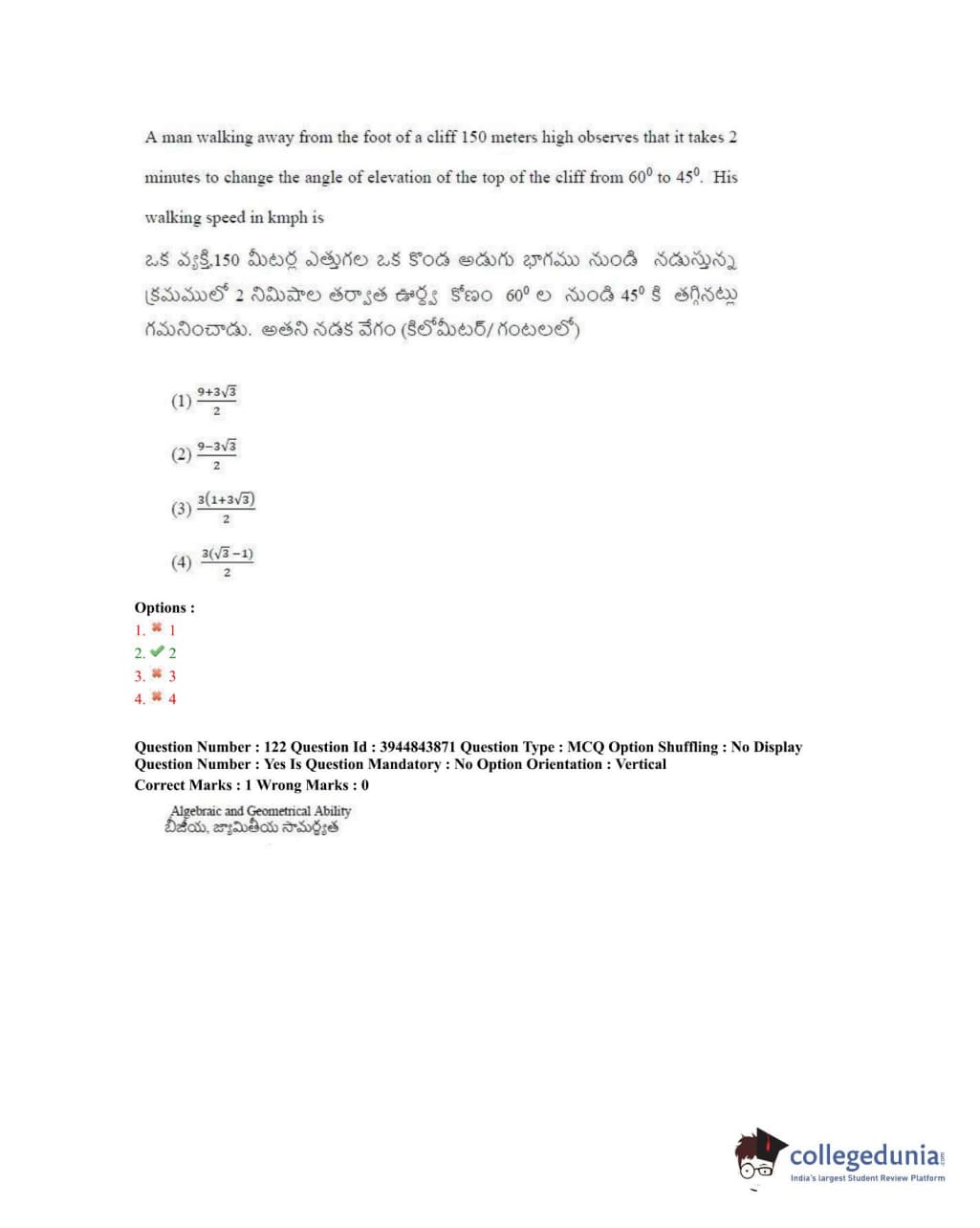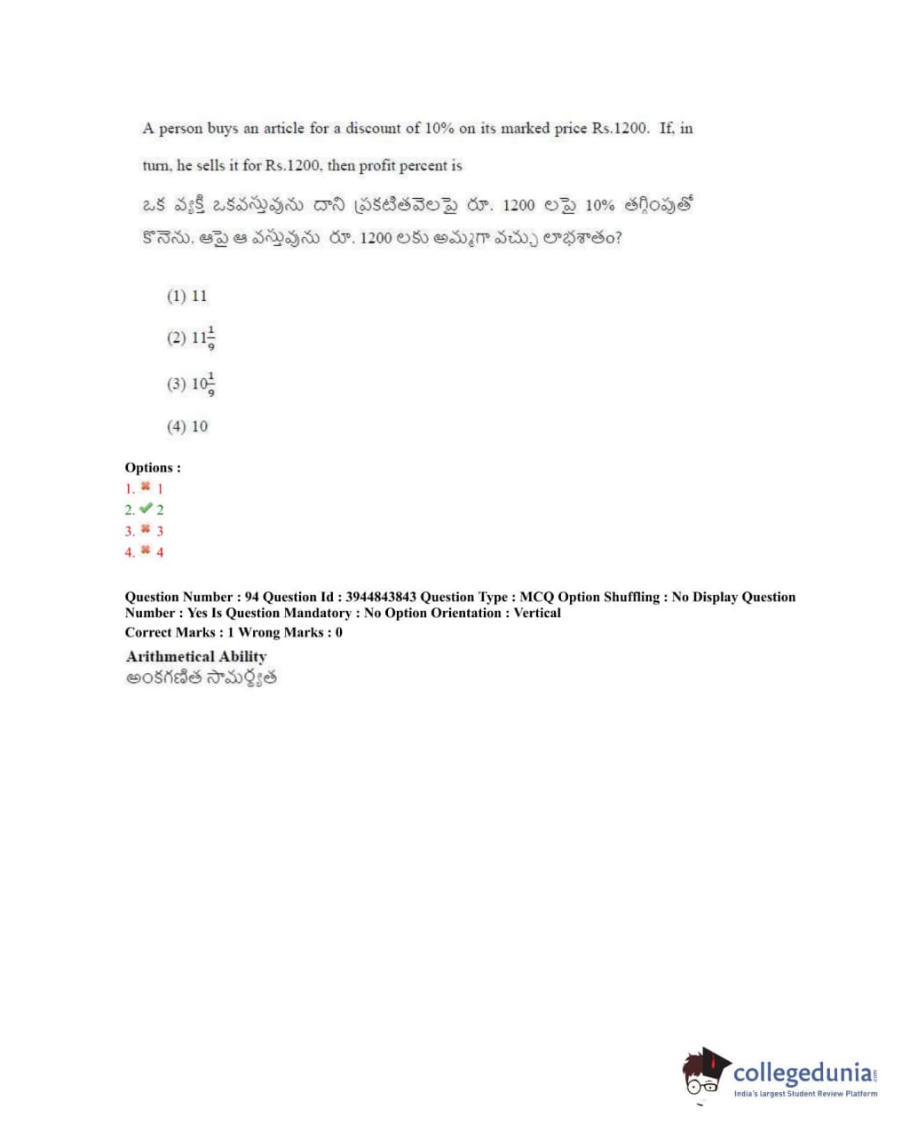 TSICET 2020 Question Paper with Answer Key PDFs Shift 1