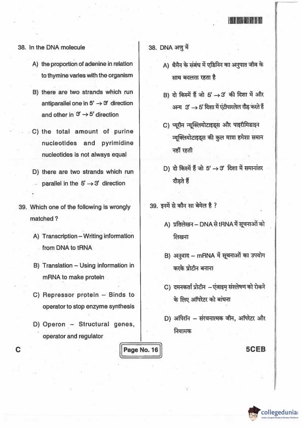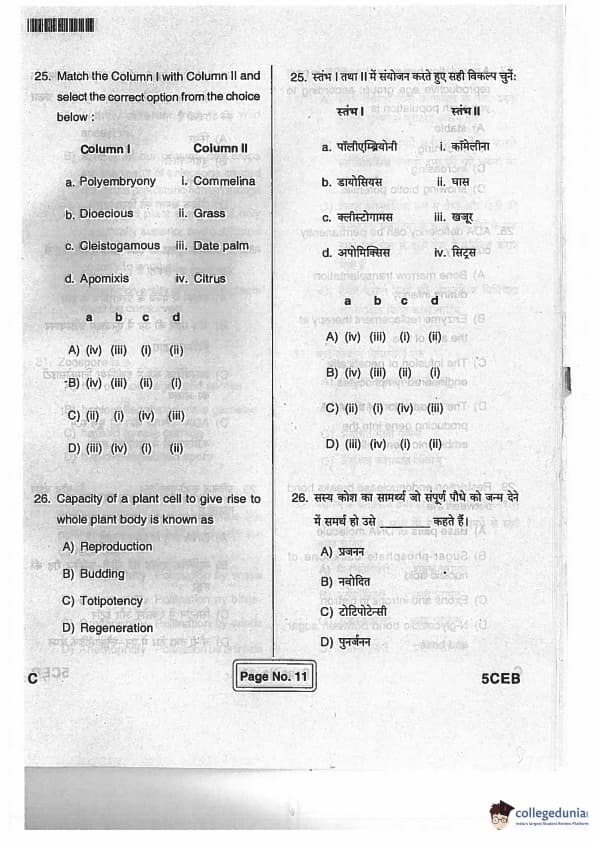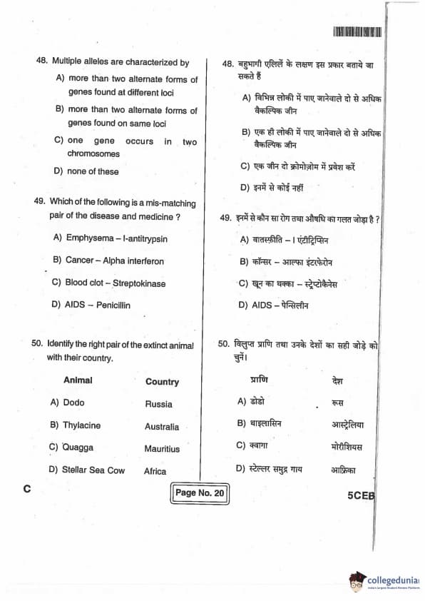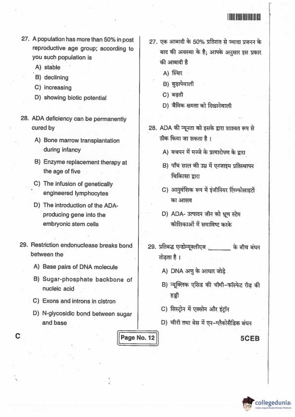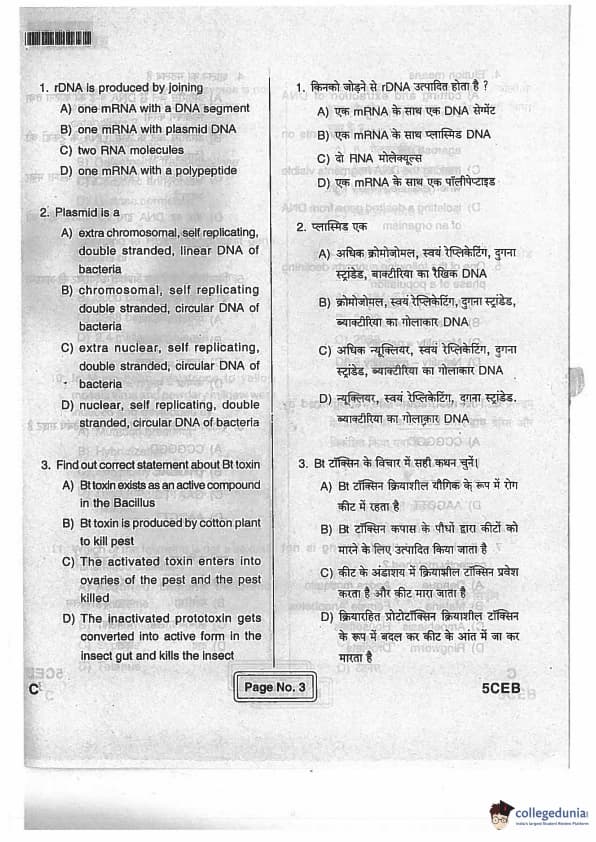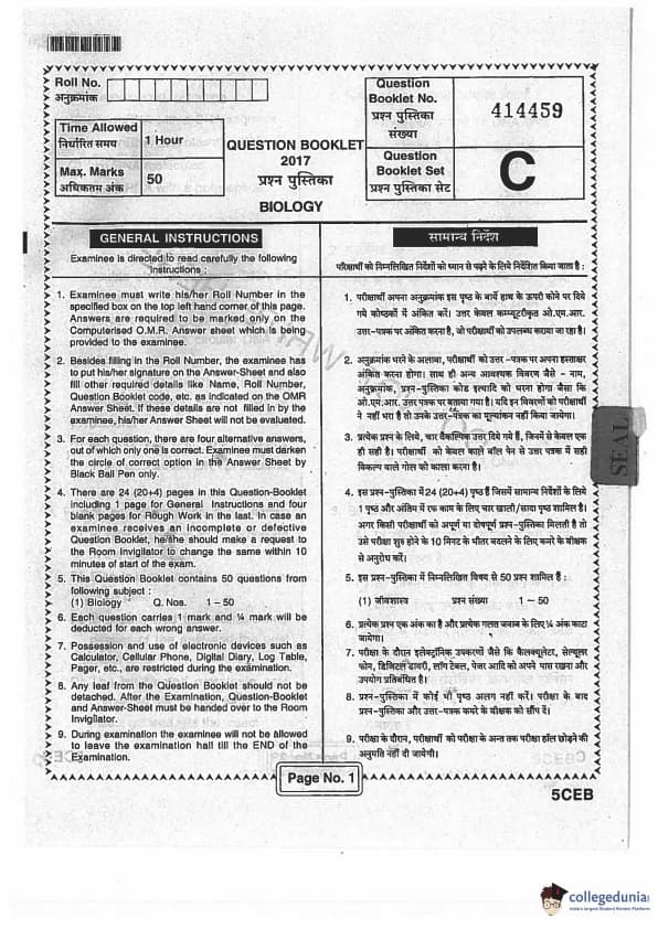 BCECE 2017 Biology Question paper (Set C) is available for download here. BCECE exam was successfully organized by Bihar Combined Entrance Competitive Examination Board on June 18, 2017. The question paper comprised a total of 50 questions.