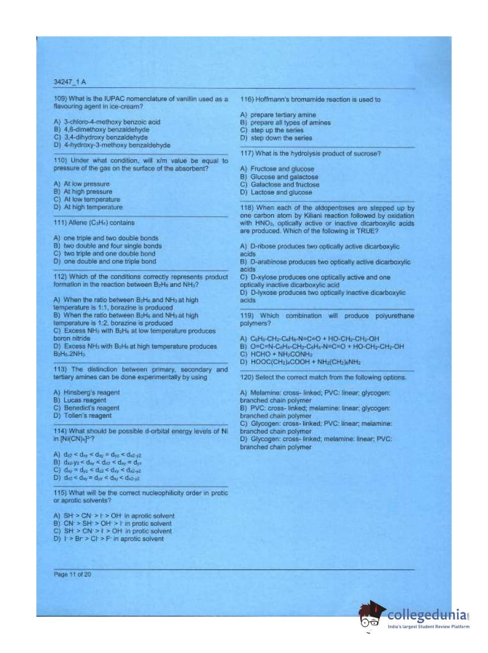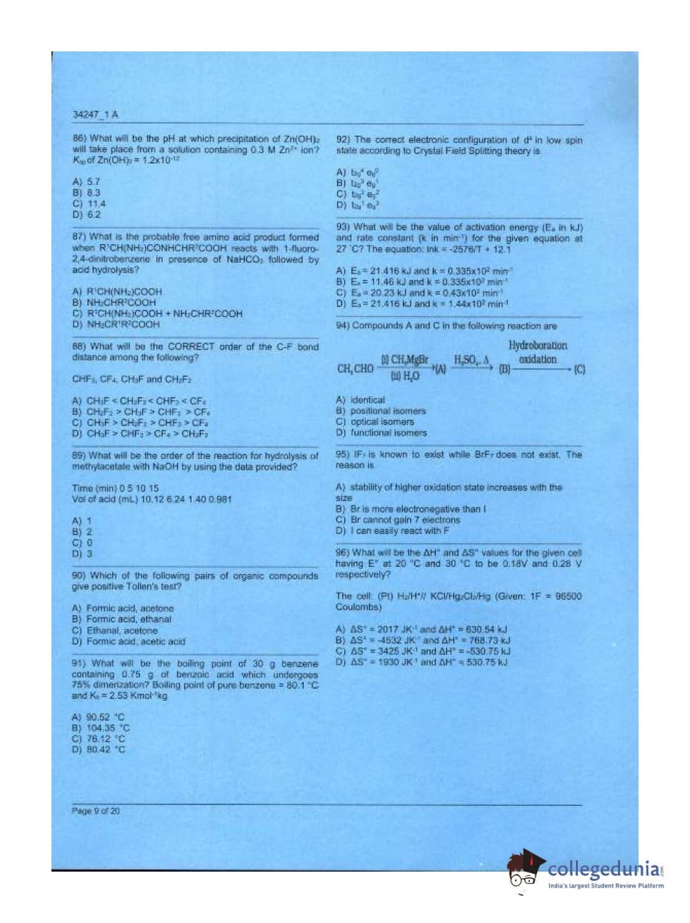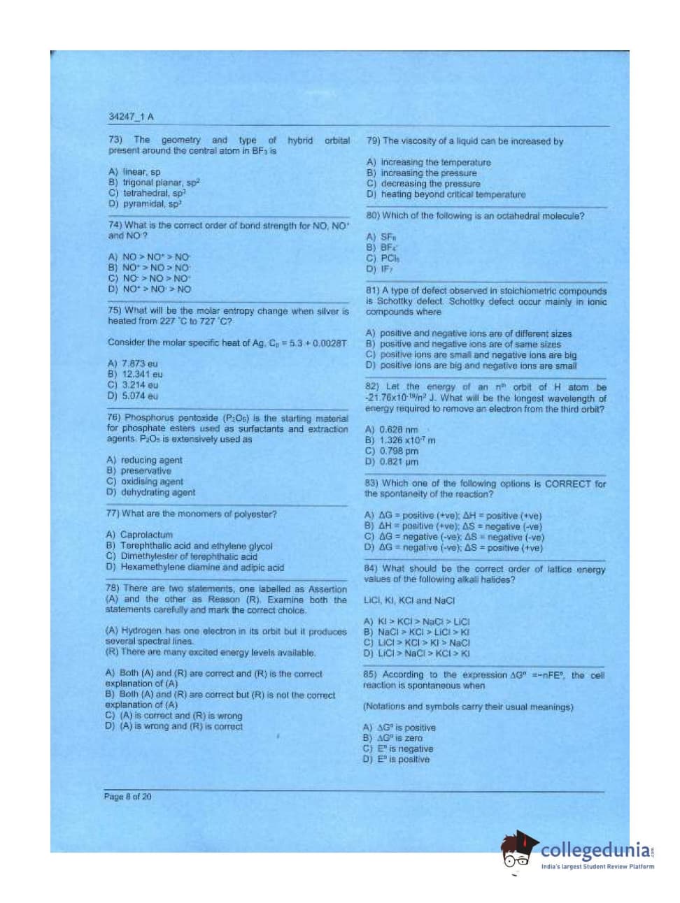 JKCET 2017 Chemistry Question Paper with Answer Key PDFs in English