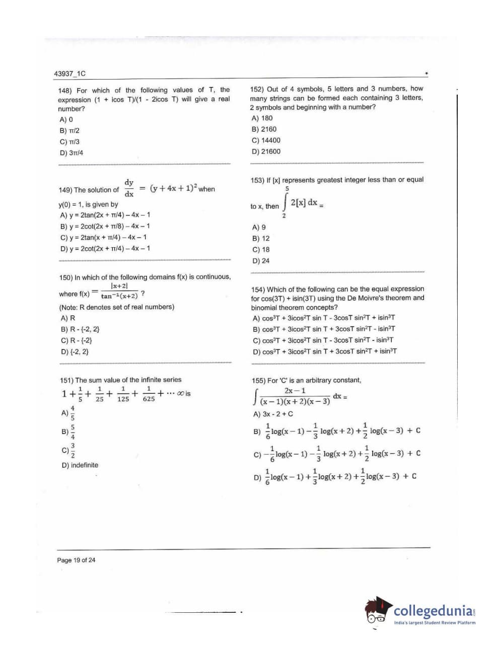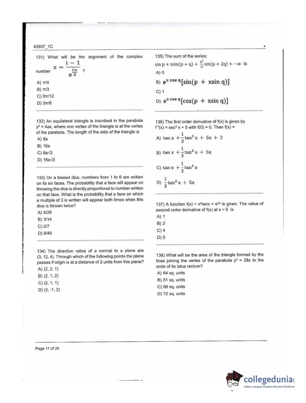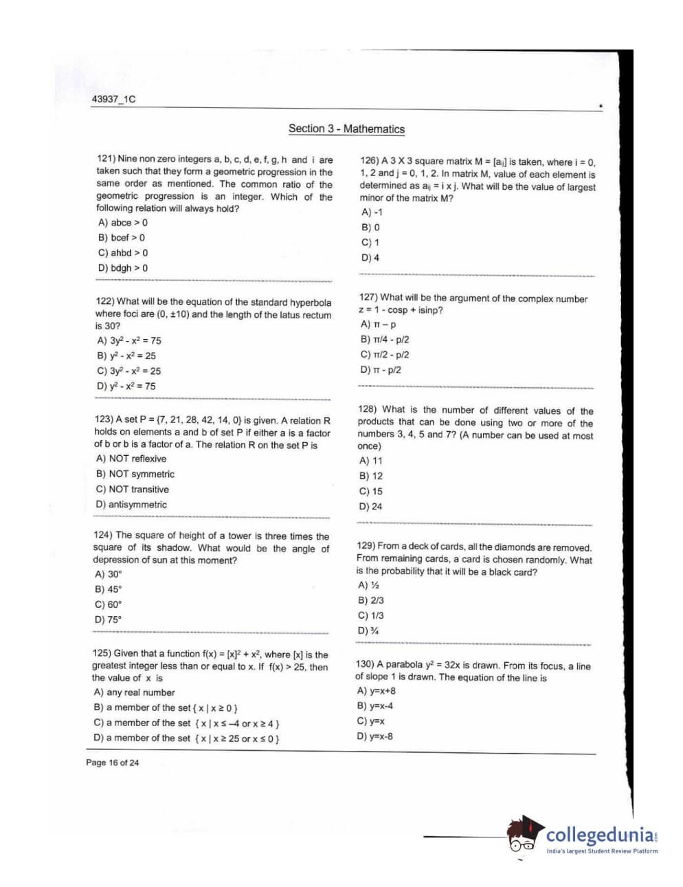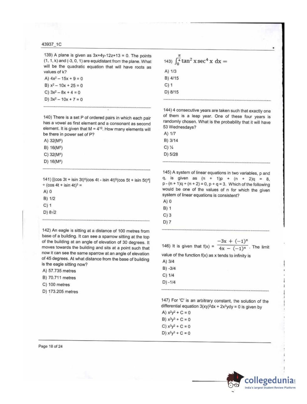 | JKCET 2018 Mathematics Question Paper PDF | JKCET 2018 Mathematics Answer Key PDF |