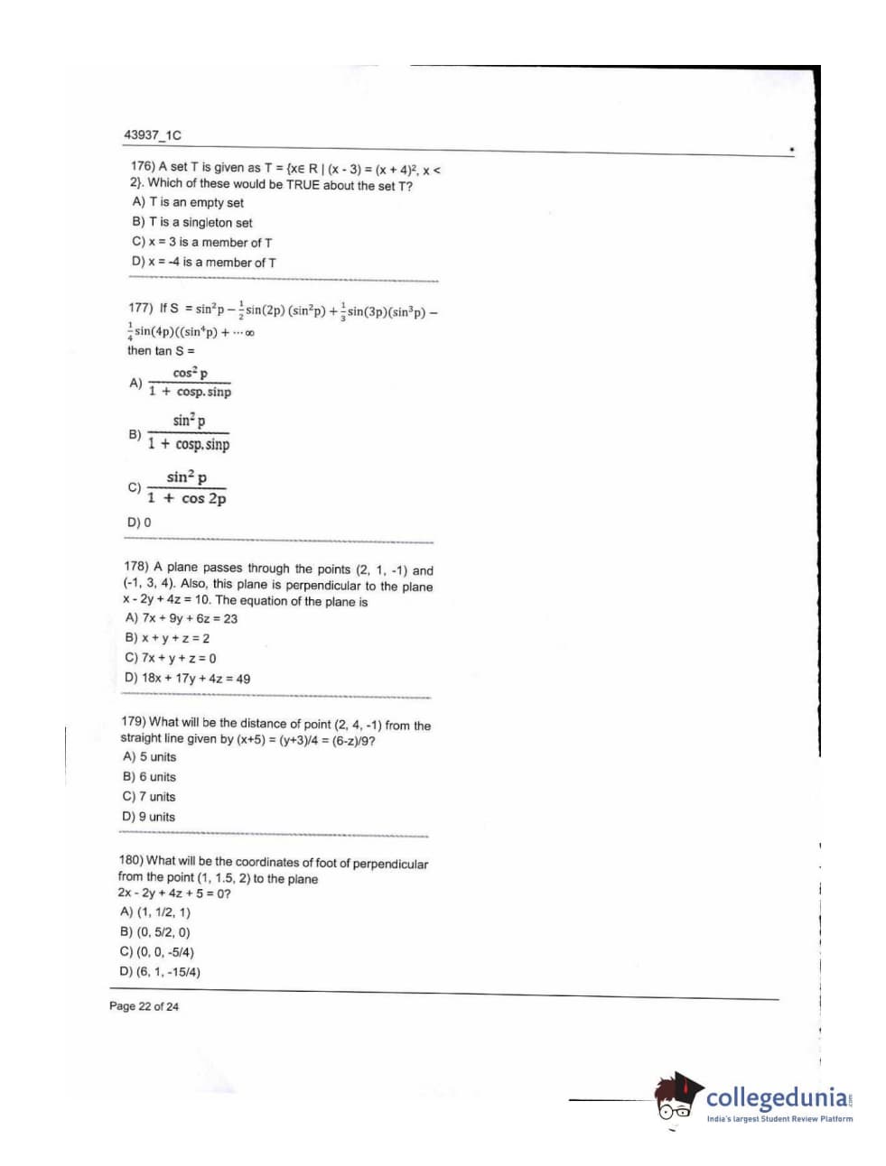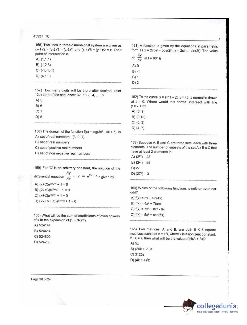 JKCET 2018 Mathematics Question paper with answer key pdf conducted on Apr 22, 2018 in Forenoon Session (10:30 AM to 1:30 PM) is available for download. The exam was successfully organized by JKBOPEE (Jammu & Kashmir Board of Professional Entrance Examinations). The question paper comprised a total of 60.0 questions.