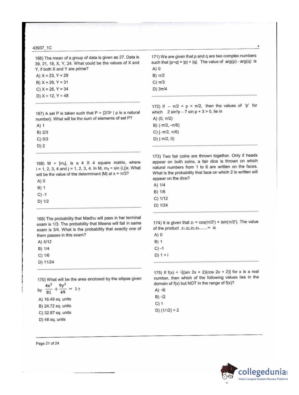 JKCET 2018 Mathematics Question Paper with Answer Key PDFs in English – Forenoon Session (10:30 AM to 1:30 PM)