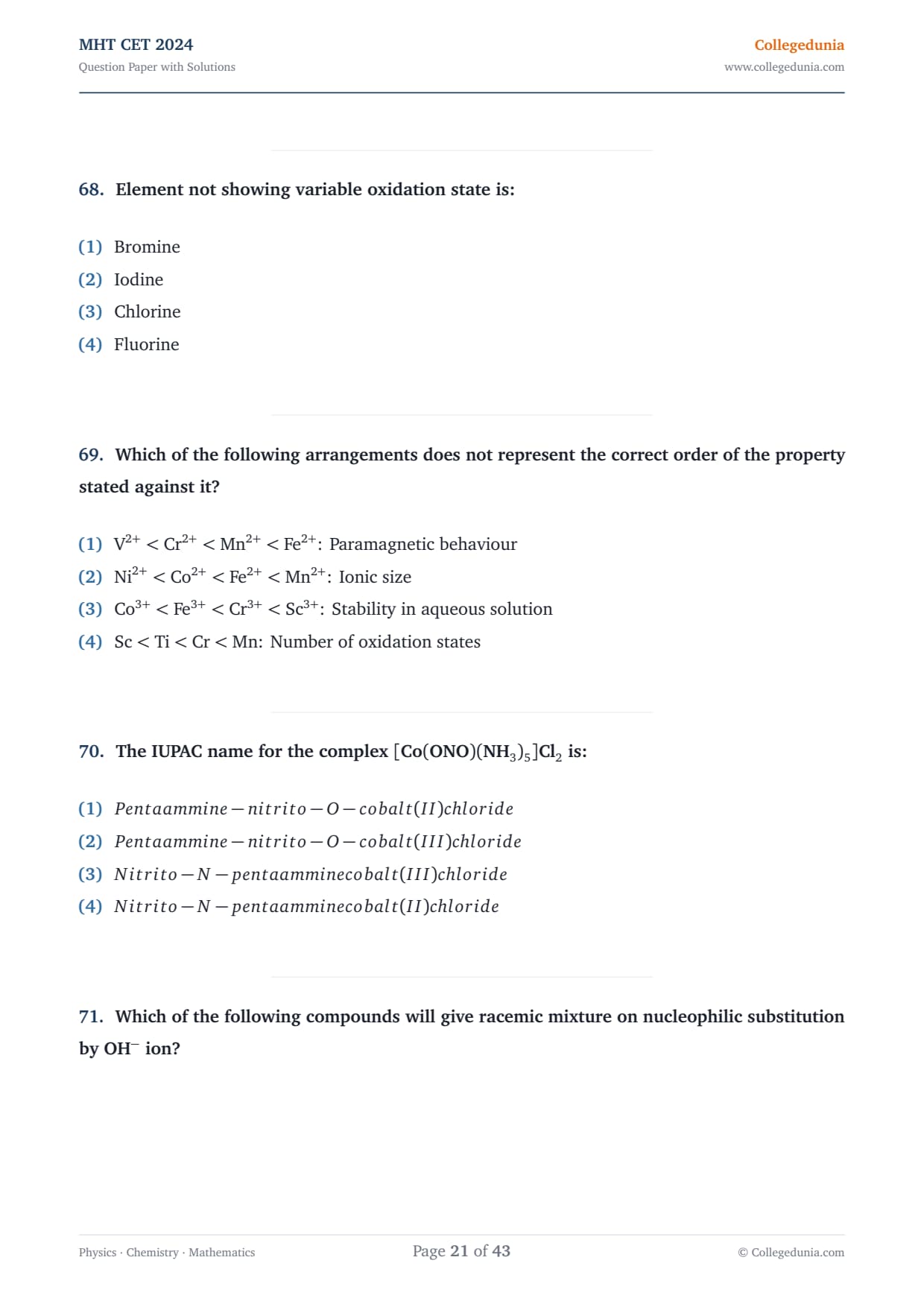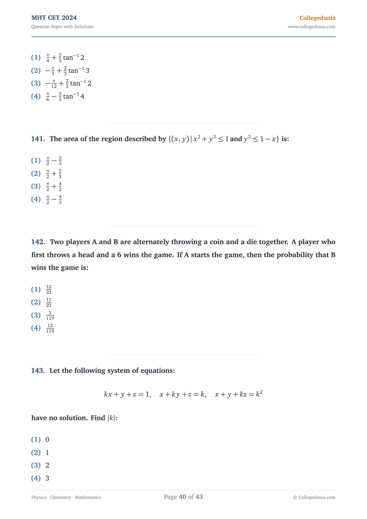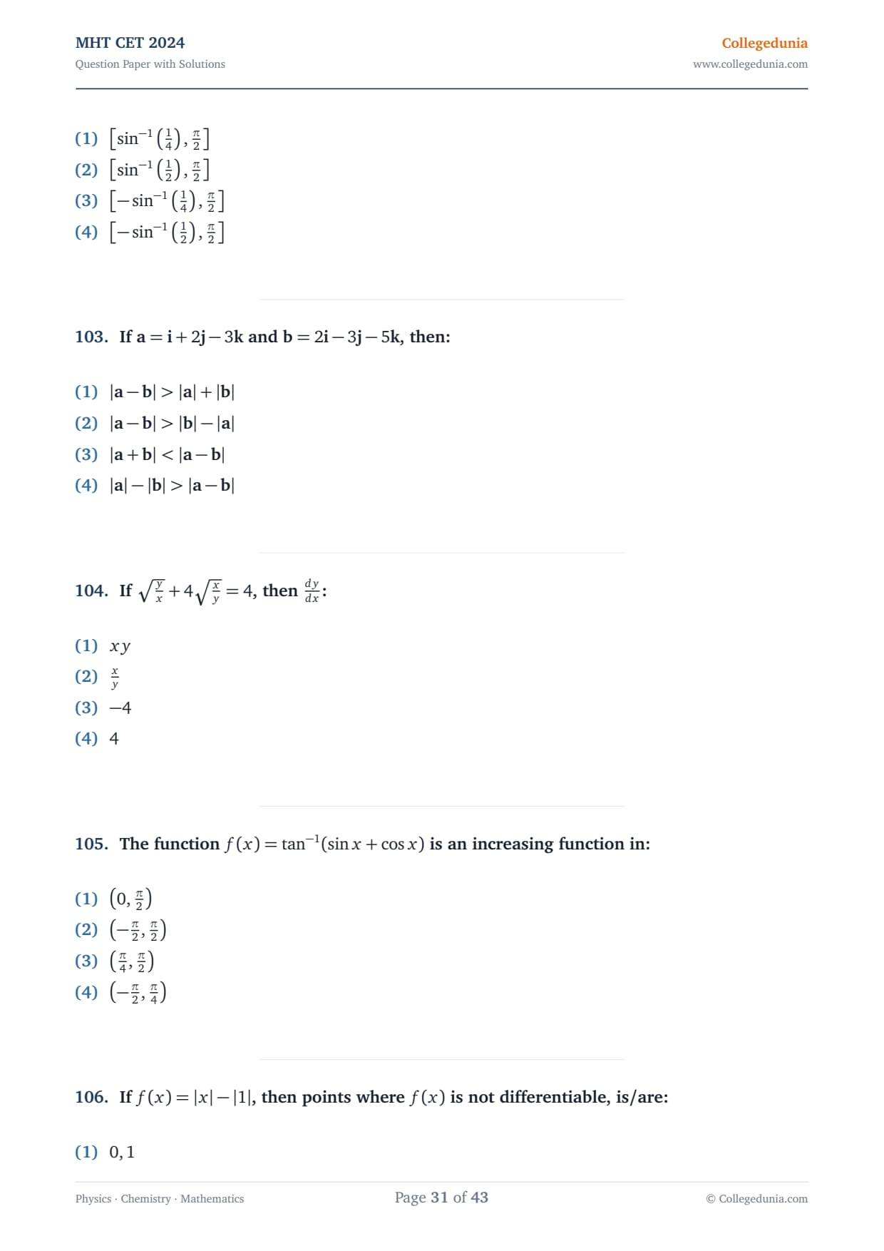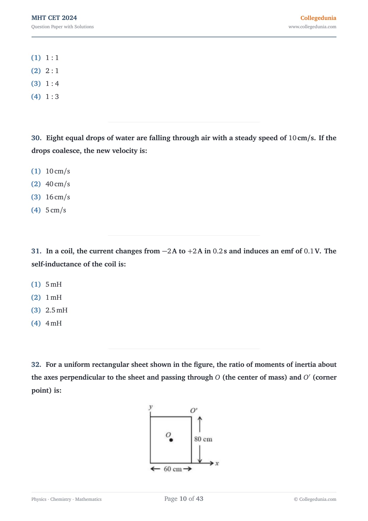 | MHT CET 2024 PCM Question Paper With Answer Key | Download PDF | Check Solutions |