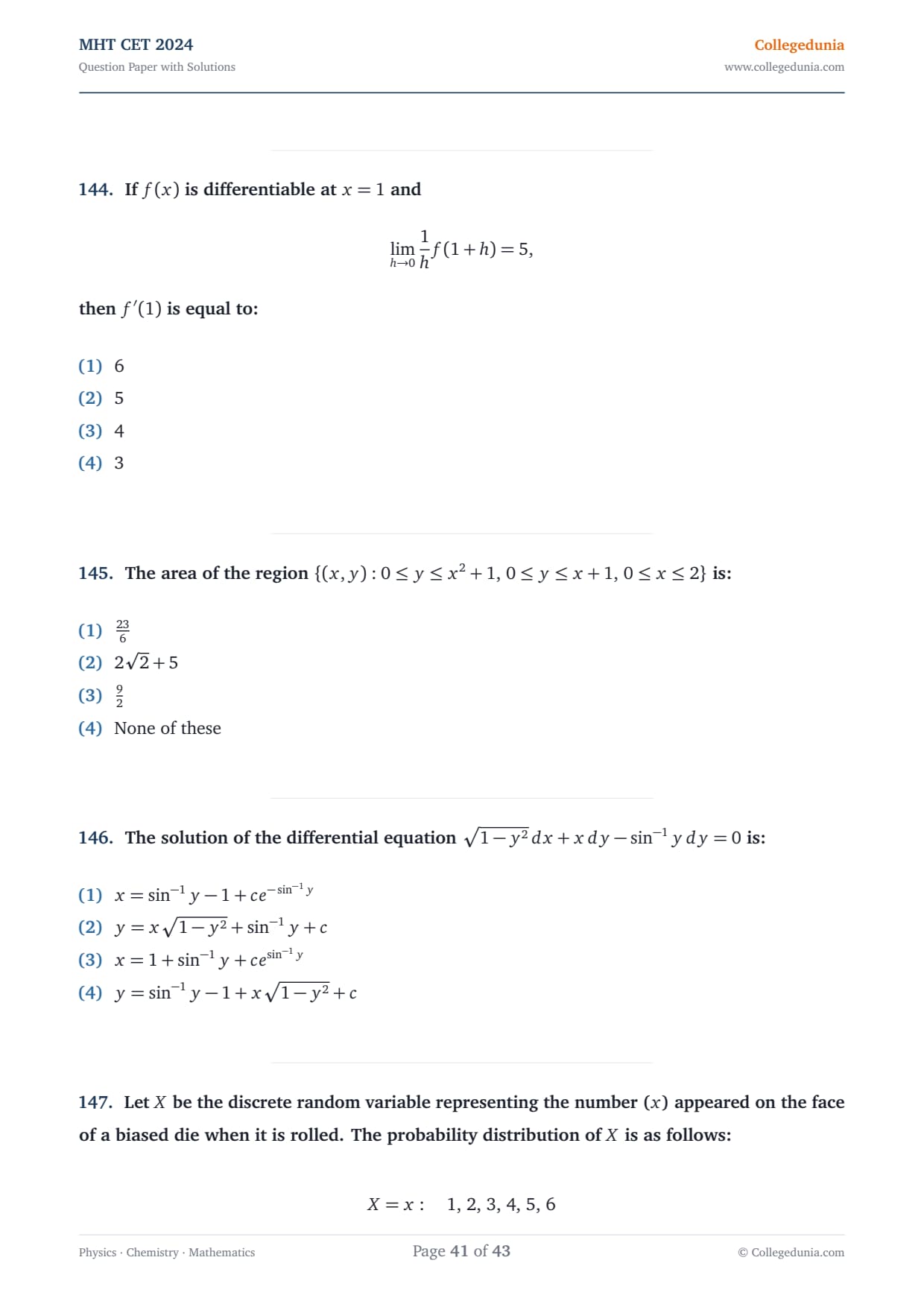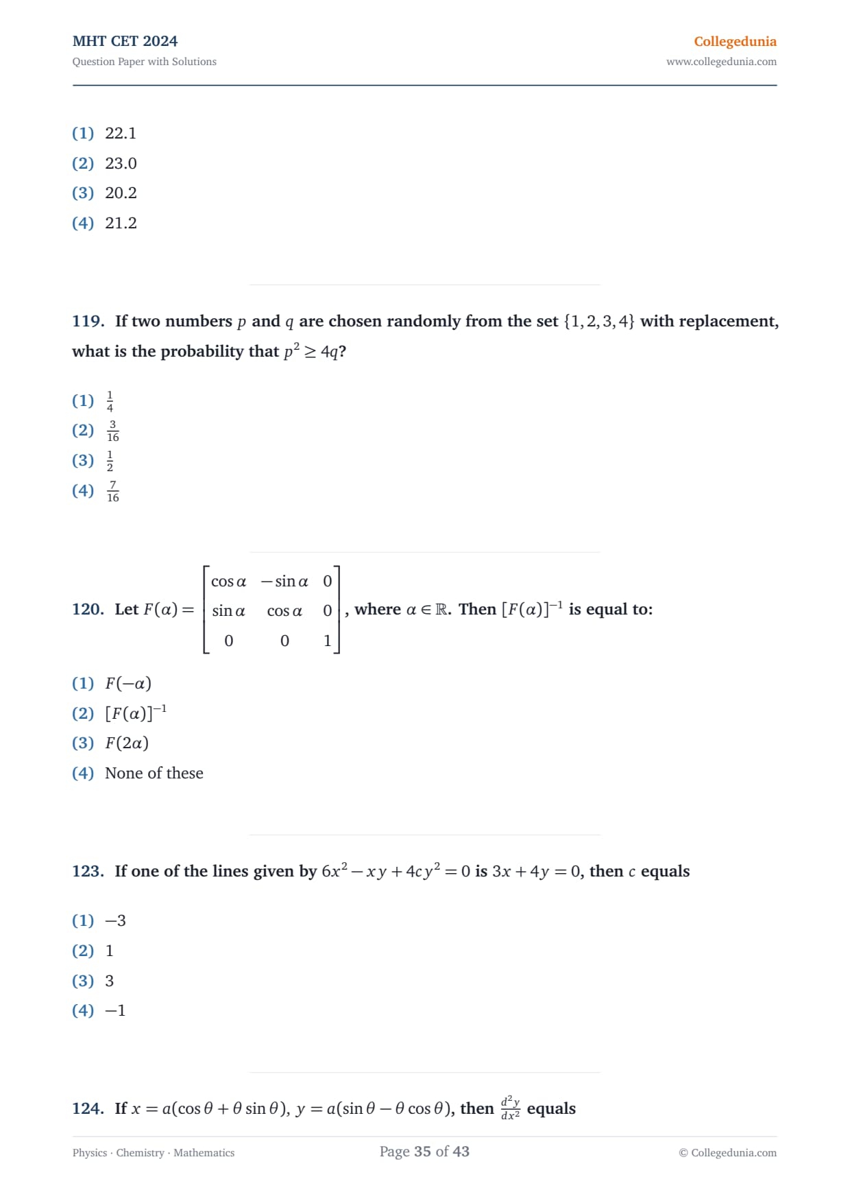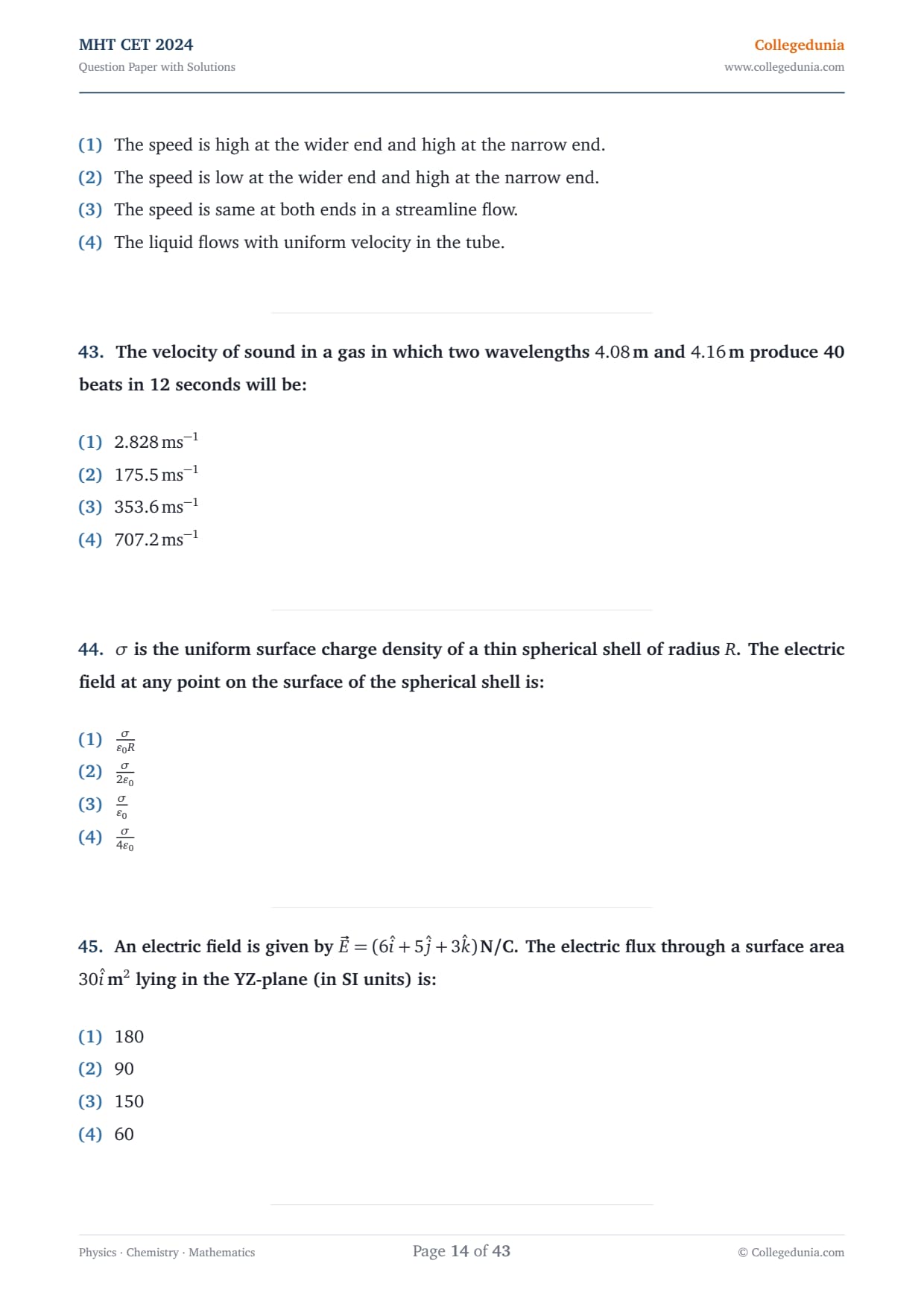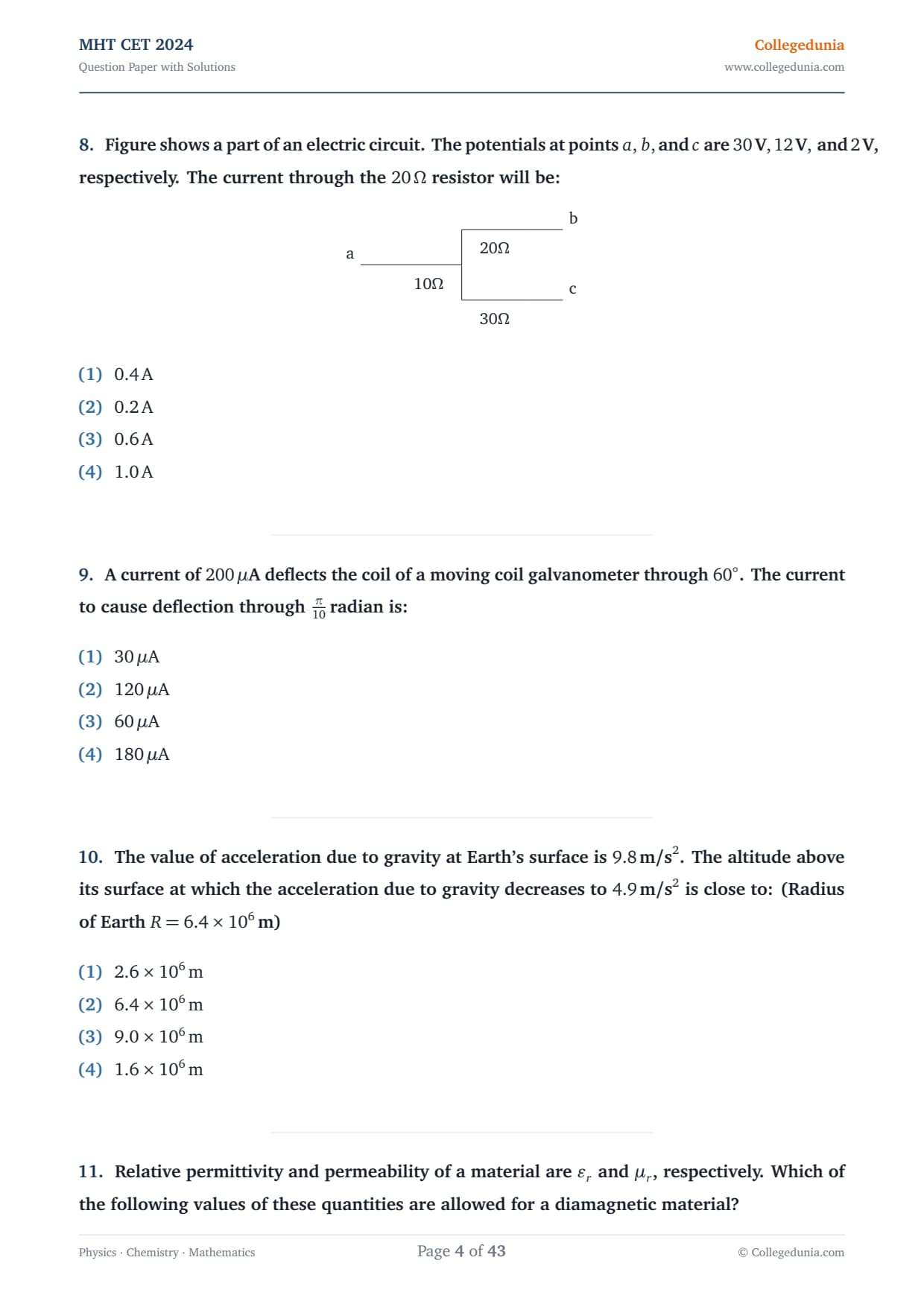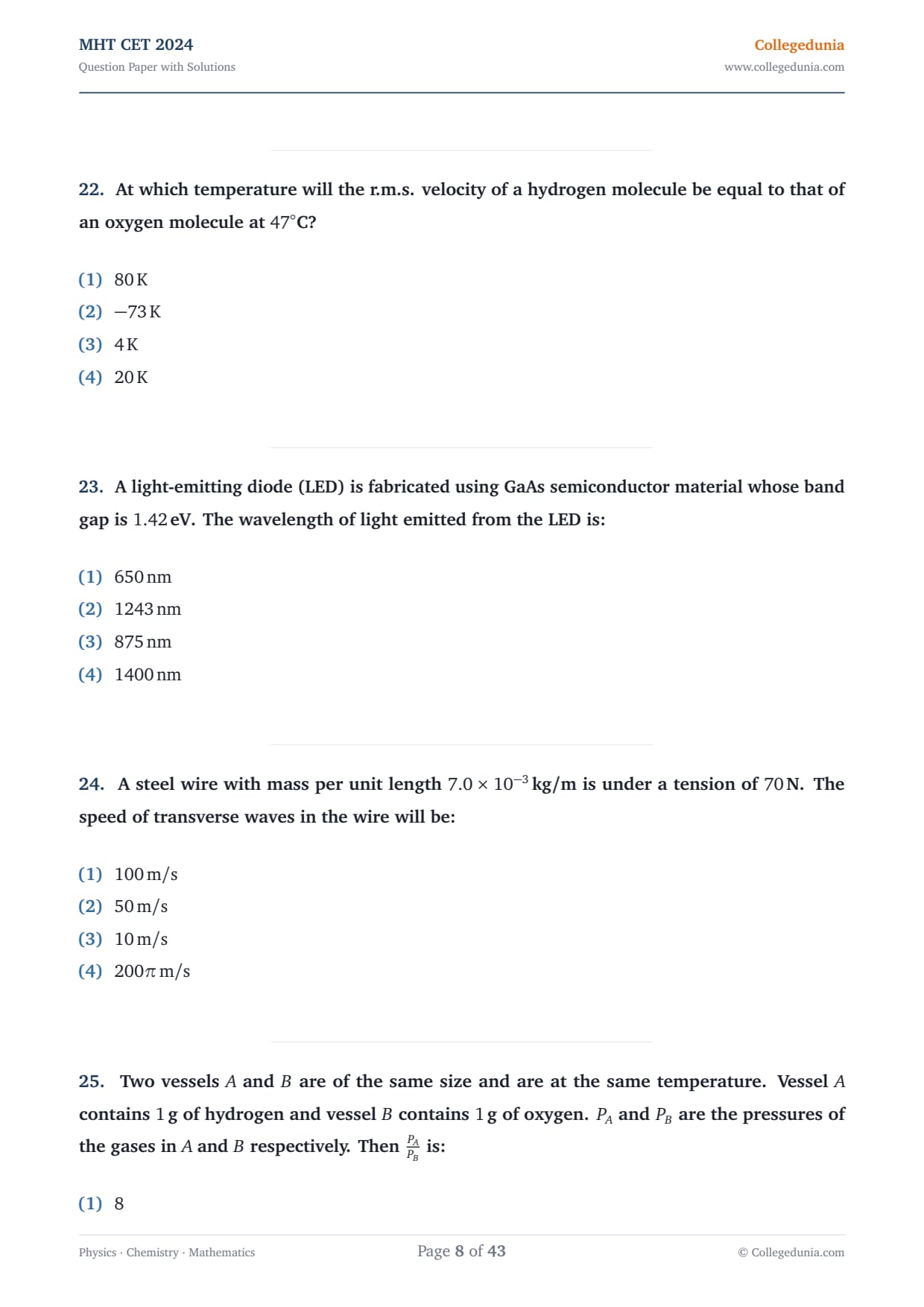 MHT CET 2024 Question Paper is available here with Solution PDF. MHT CET 2024 question paper comprises 150 MCQs carrying a total weightage of 200 marks. MHT CET 2024 Question Paper for PCM is divided into three subjects- Physics, Chemistry and Mathematics.