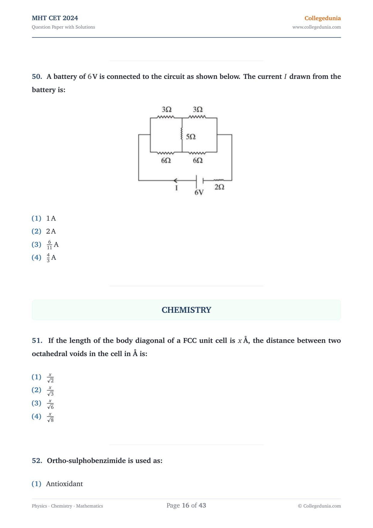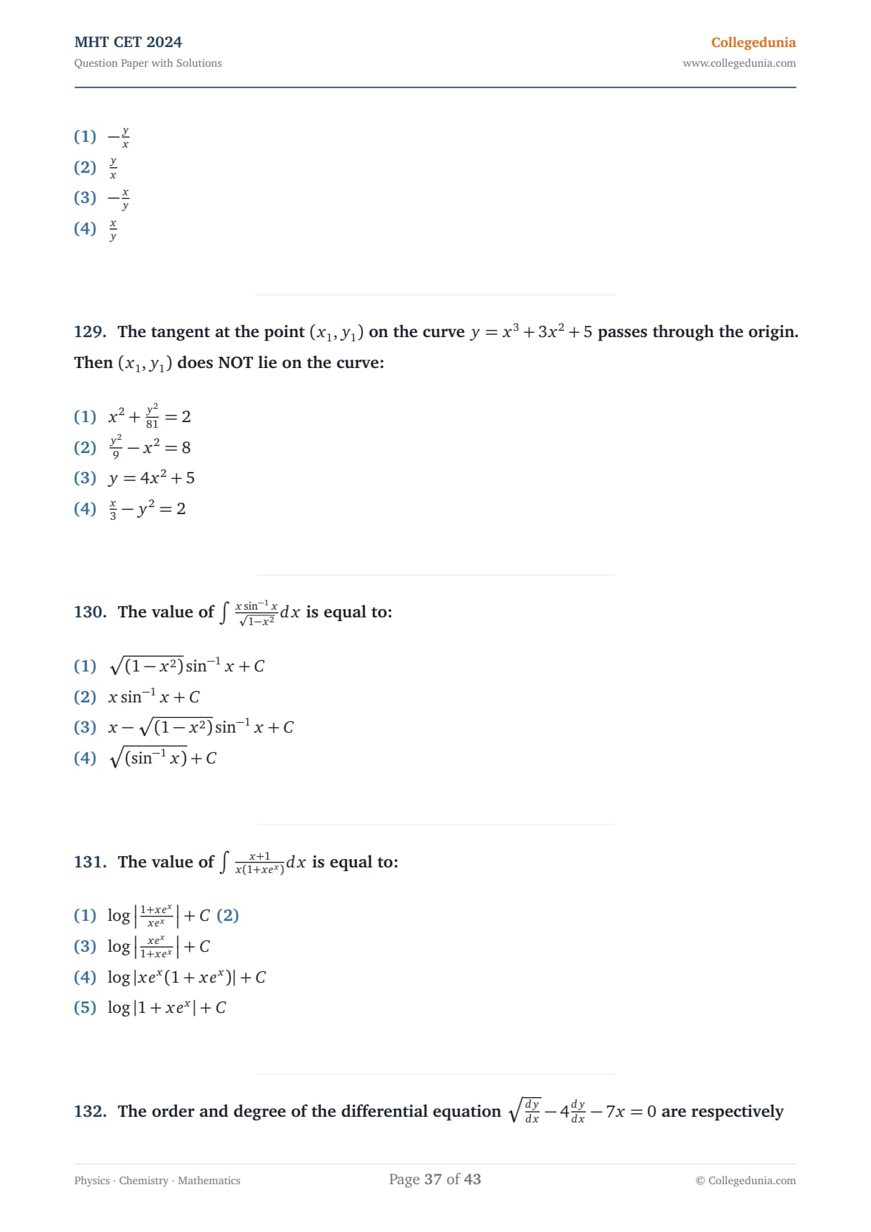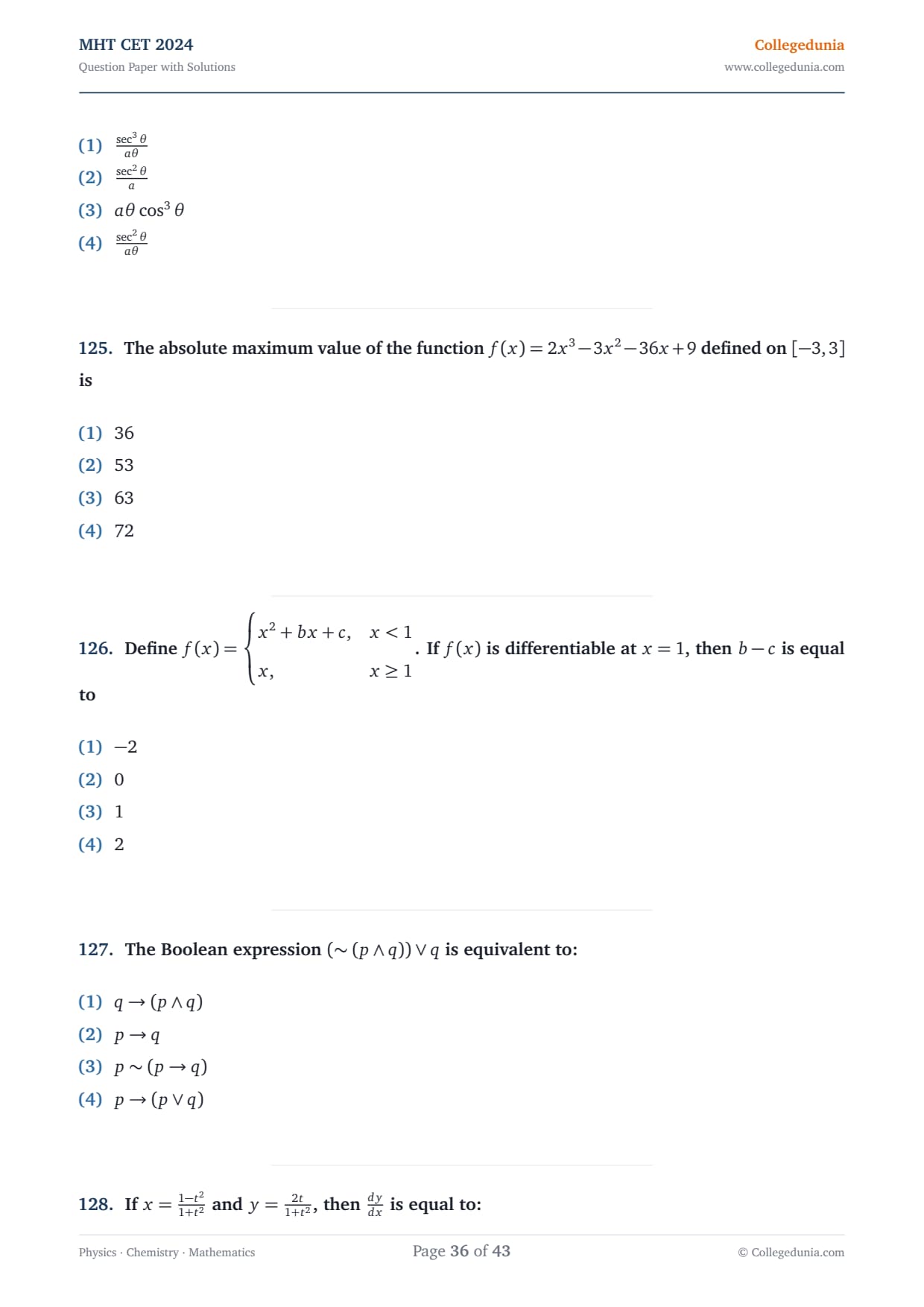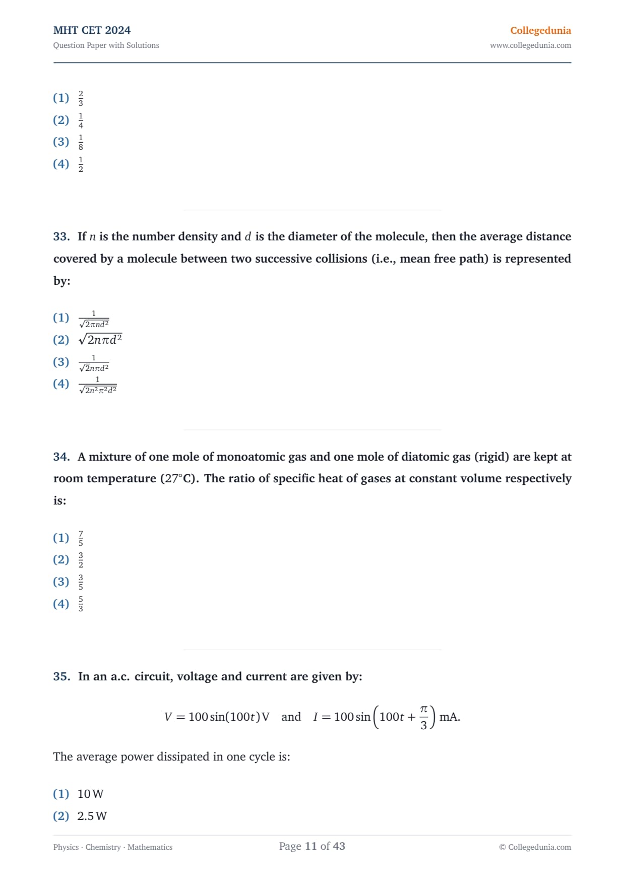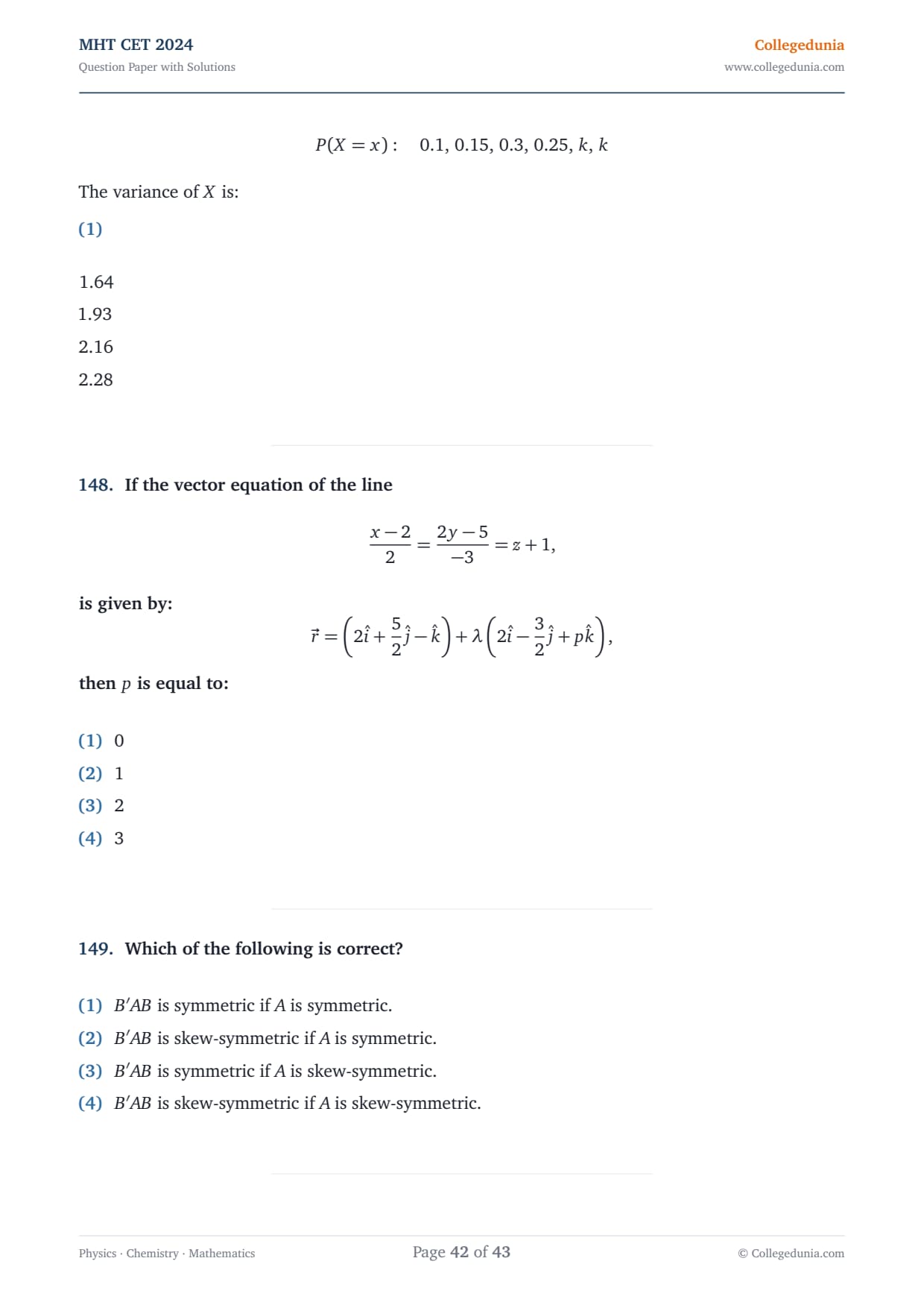 MHT CET 2024 Question Paper is available here with Solution PDF. MHT CET 2024 question paper comprises 150 MCQs carrying a total weightage of 200 marks. MHT CET 2024 Question Paper for PCM is divided into three subjects- Physics, Chemistry and Mathematics.