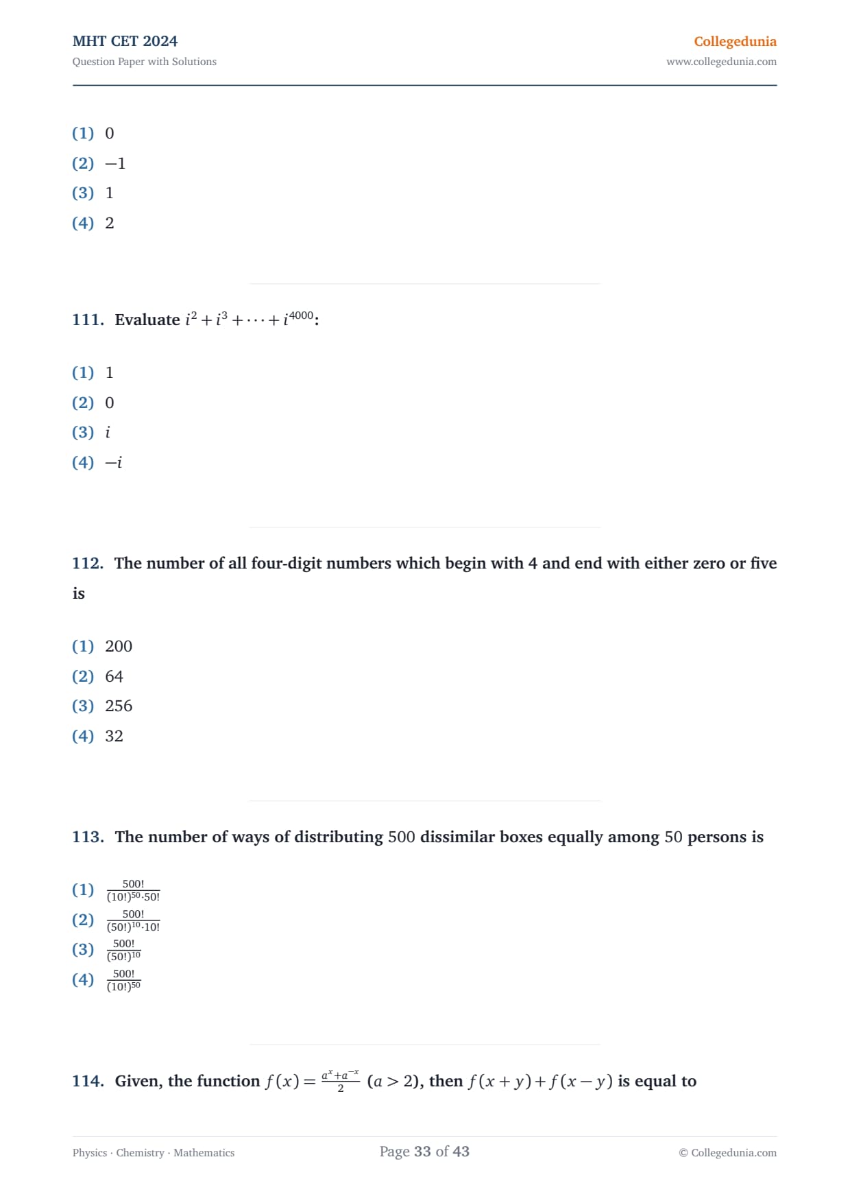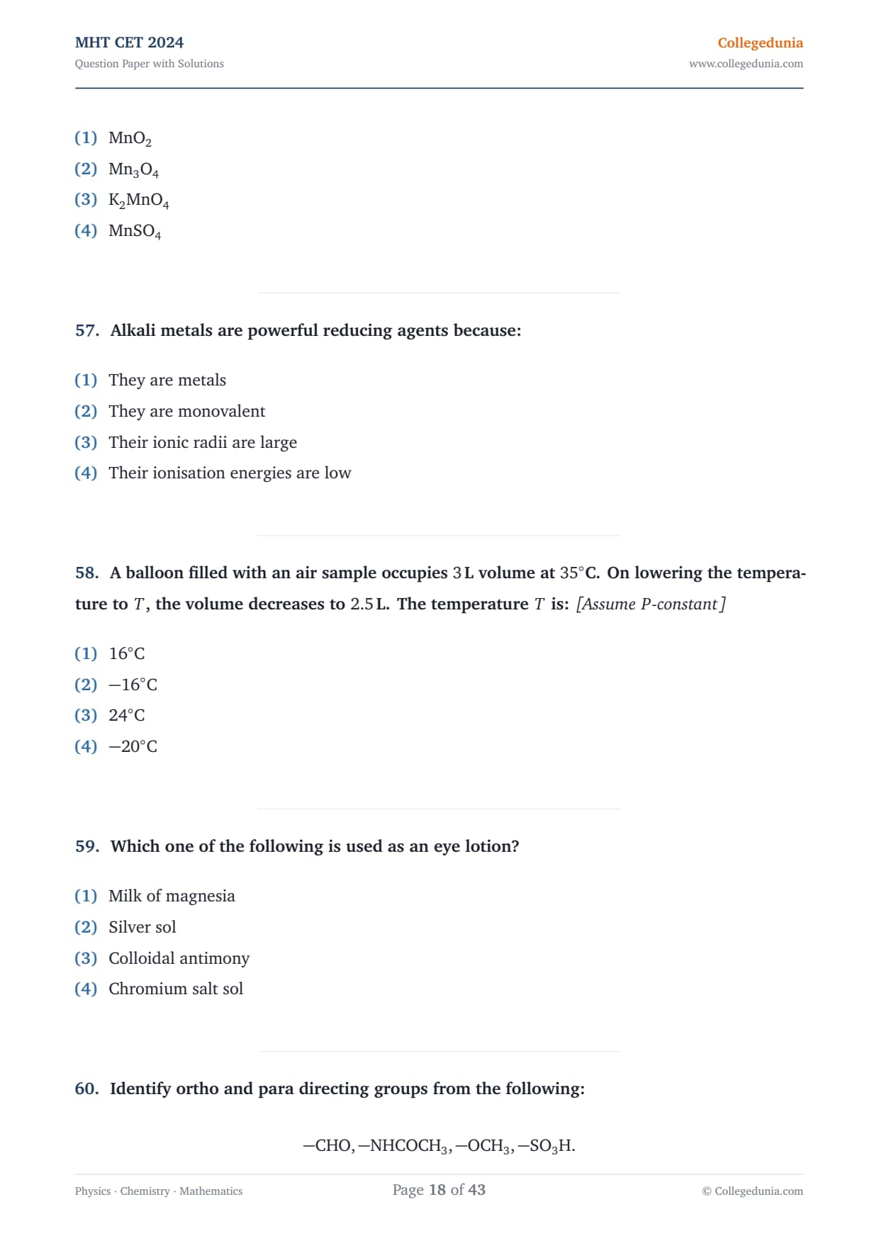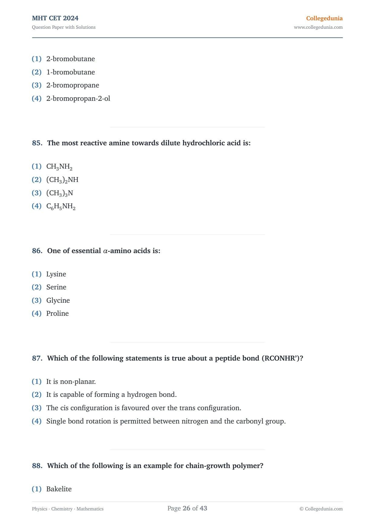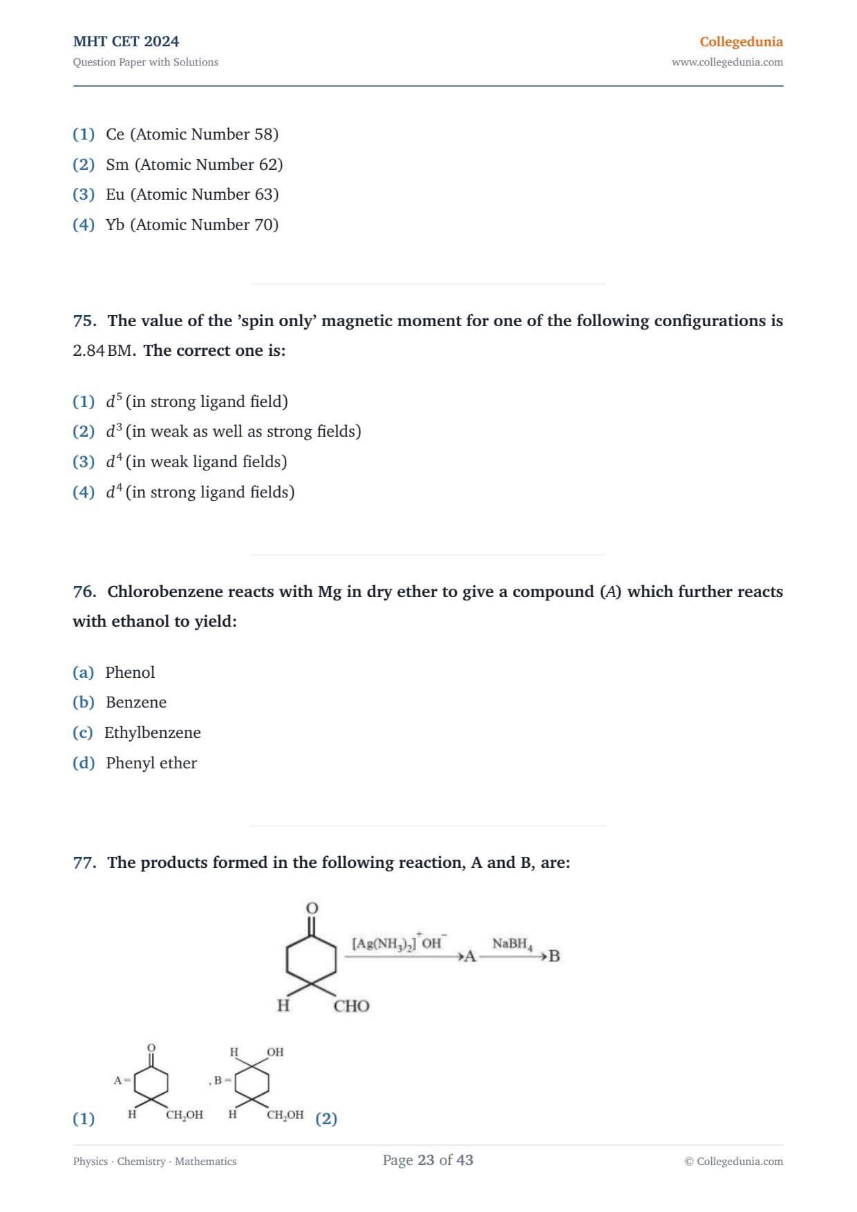 MHT CET 2024 Question Paper is available here with Solution PDF. MHT CET 2024 question paper comprises 150 MCQs carrying a total weightage of 200 marks. MHT CET 2024 Question Paper for PCM is divided into three subjects- Physics, Chemistry and Mathematics.