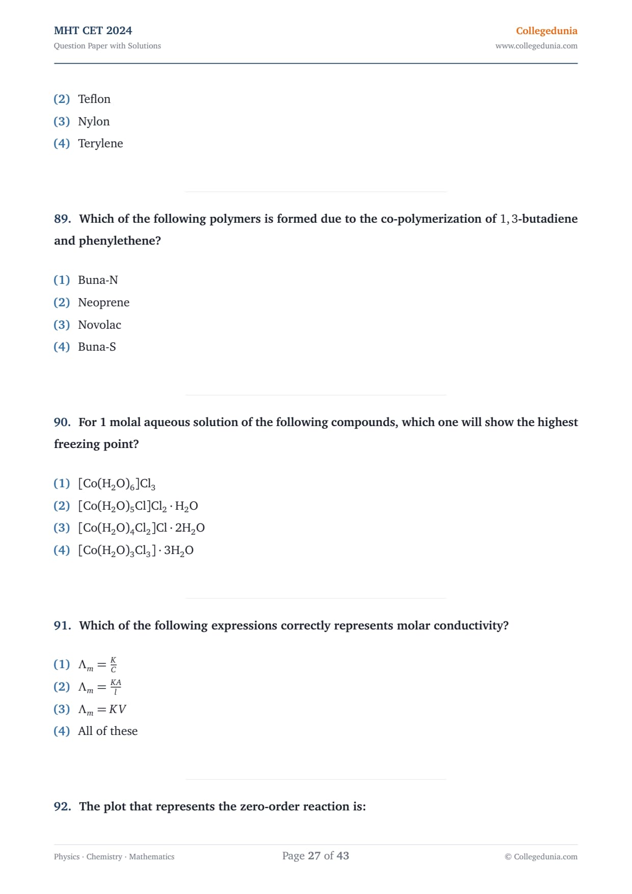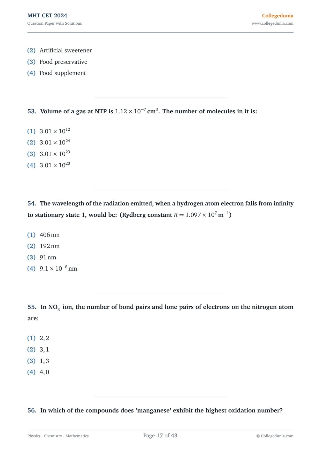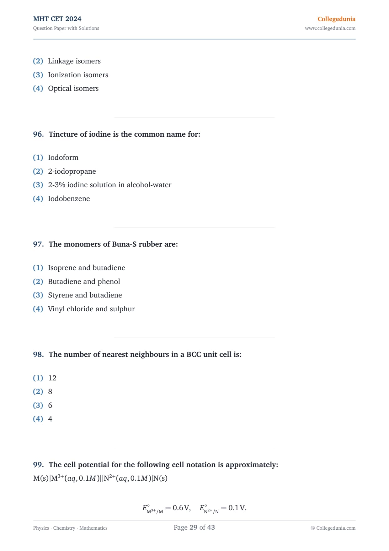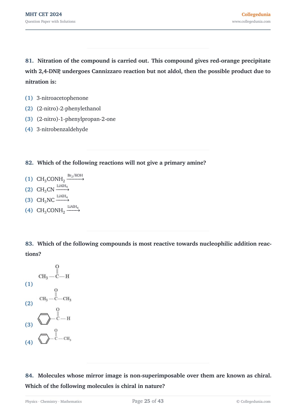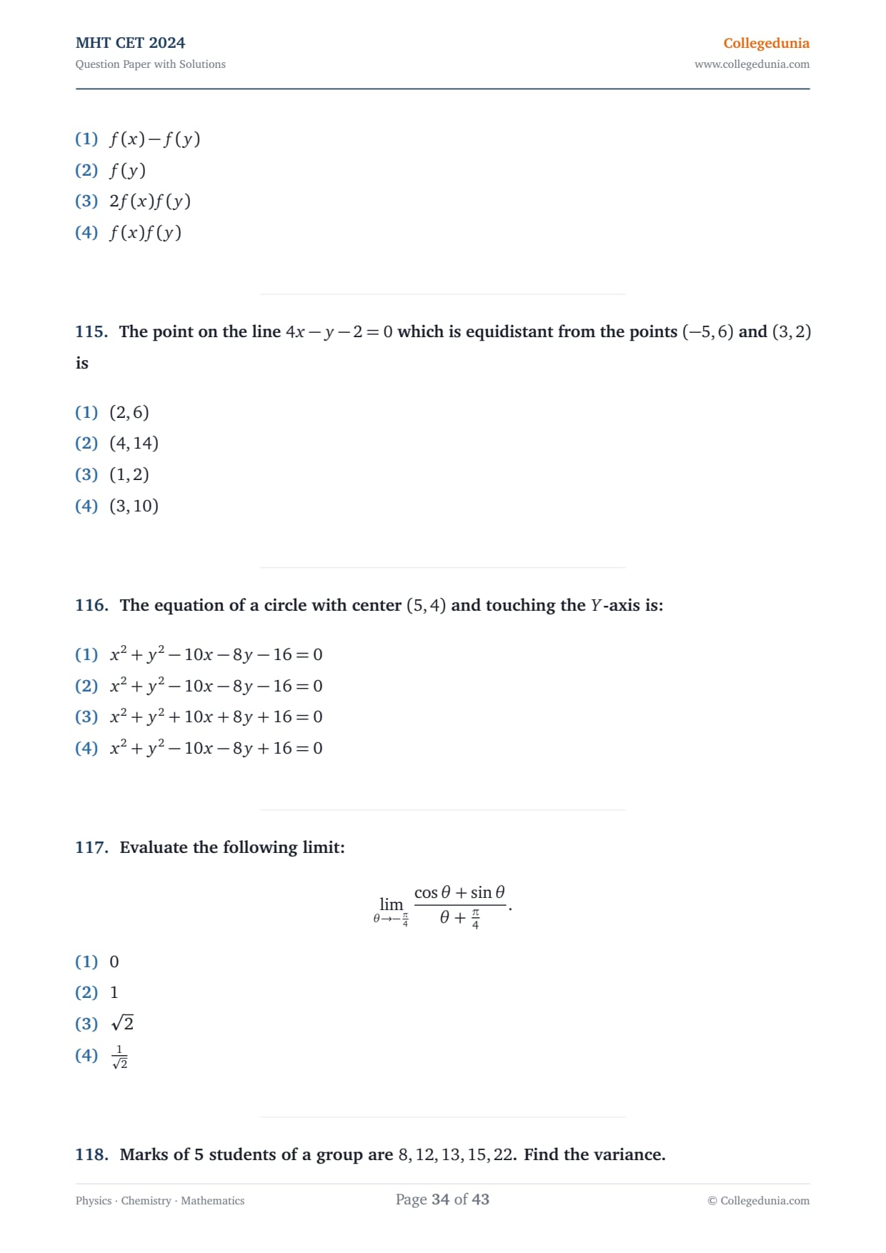 MHT CET 2024 Question Paper is available here with Solution PDF. MHT CET 2024 question paper comprises 150 MCQs carrying a total weightage of 200 marks. MHT CET 2024 Question Paper for PCM is divided into three subjects- Physics, Chemistry and Mathematics.