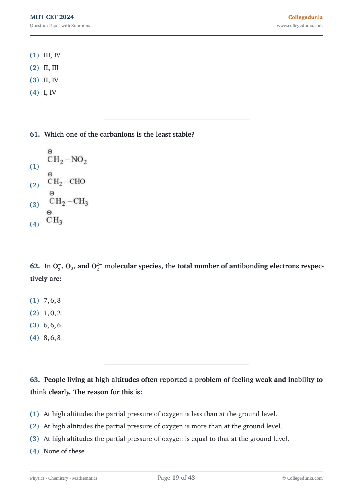 | MHT CET 2019 Question Paper | MHT CET 2018 Question Paper |