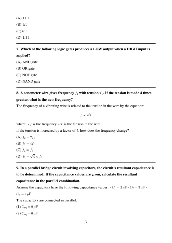 A sonometer wire gives frequency \( f_1 \) with tension \( T_1 \). If the tension is made 4 times greater, what is the new frequency?