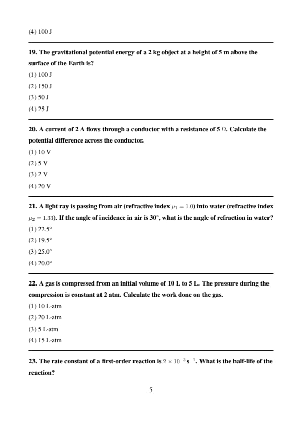 | Physics | 50 | 1 | 50 |