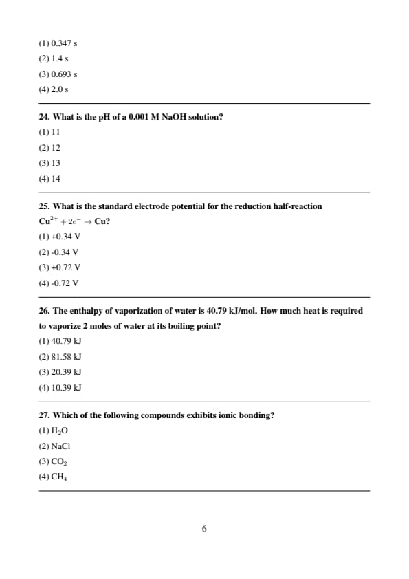 | Chemistry | 50 | 1 | 50 |