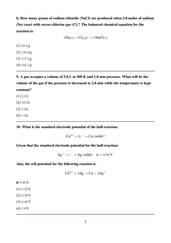 Also, the cell potential for the following reaction is: \[ Cu^{2+} + 2Ag \rightarrow Cu + 2Ag^+ \]