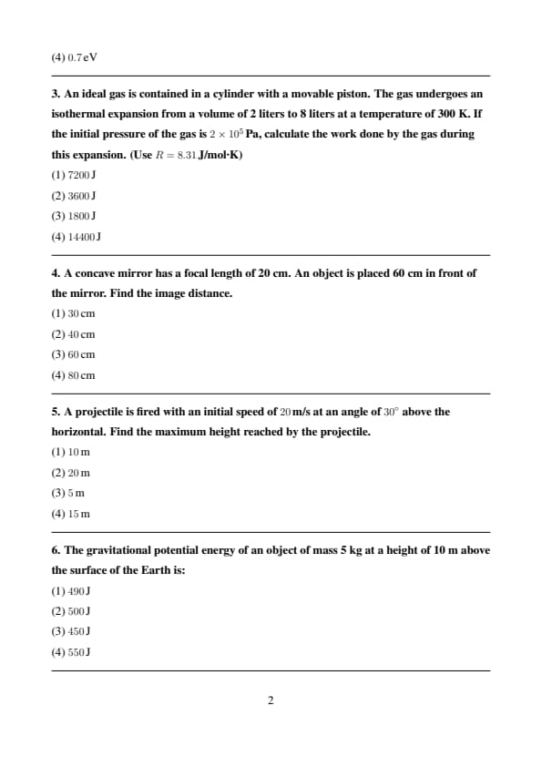 | Physics | 50 | 1 | 50 |