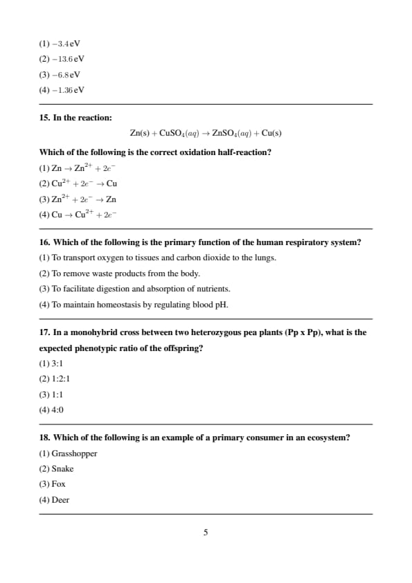 MHT CET 2025 15 April Shift 2 PCB Question Paper PDF Download