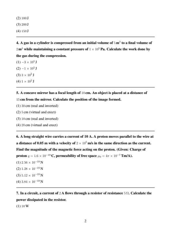 | Physics | 50 | 1 | 50 |