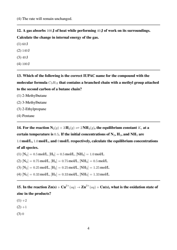 | Physical Chemistry | 40% | 20 |